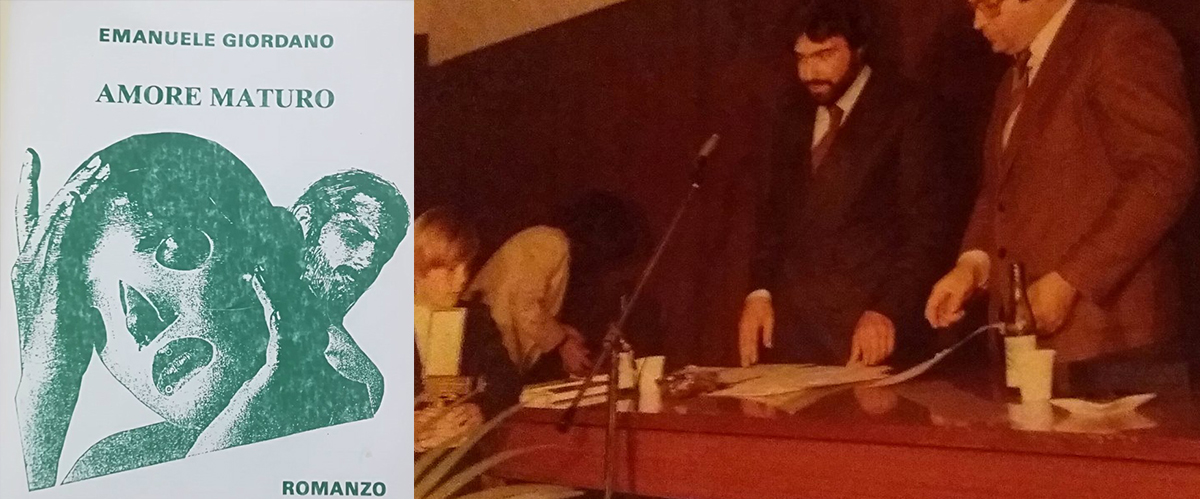 Nei primi anni Ottanta il territorio comincia ad accorgersi del talento cristallino di Giordano. Sul suo profilo Fb, Di Mauro espone alcune fotografie di quel periodo. Le immagini immortalano una iniziativa organizzata ad Acireale, in municipio: si tratta di una mostra di pittura chiamata Un linguaggio giovane. «Gli studenti del Liceo artistico esponevano opere pittoriche ispirate alle poesie di Emanuele Giordano», dice la didascalia vergata dal giornalista. Alla manifestazione, incredibilmente, partecipa anche Danilo Dolci, sociologo della nonviolenza. Il Gandhi italiano appare in una foto in terza fila. In un altro scatto, si torna alla famiglia Capuana: il figlio minore di Pietro, Salvo (non coinvolto nell’inchiesta 12 apostoli), in età infantile, ritira un premio dedicato al misterioso, almeno pubblicamente, Emanuele Giordano. «Era il 1980 – scrive Di Mauro – Stavo presentando, all’auditorium di San Giovanni Nepomuceno di via Romeo ad Acireale, il romanzo Sunrise».