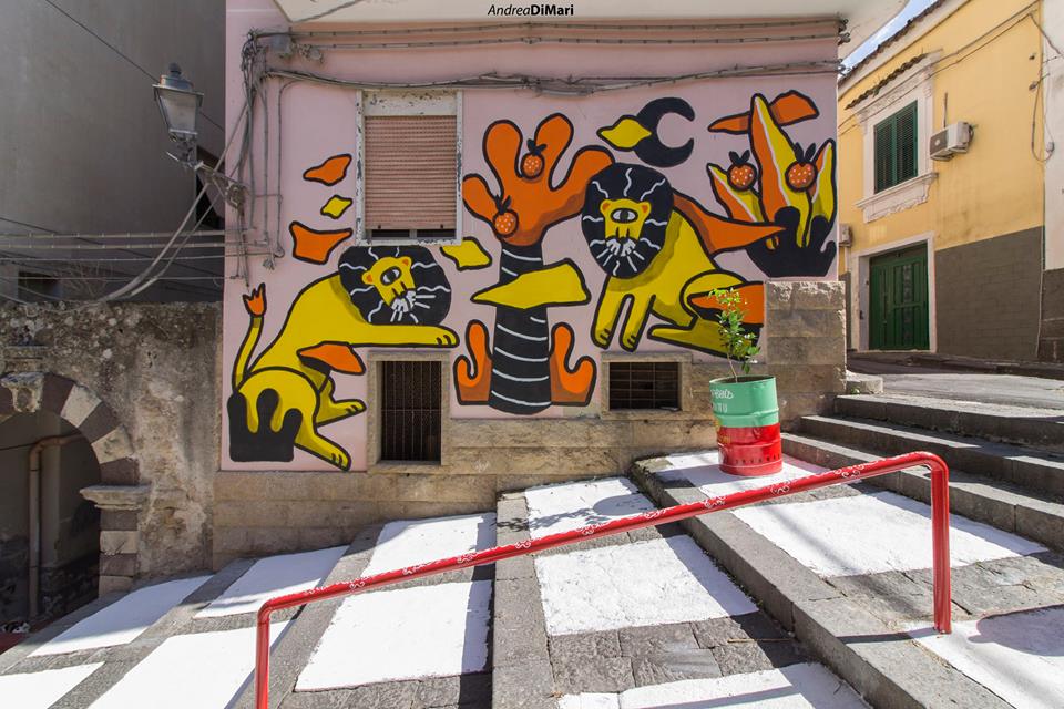 Snoda e fai è il titolo dell’opera murale della lentinese Lorena Fisicaro: «In essa ho rappresentato la mia città natale, che da anni tergiversa in uno stato stagnante, ma che adesso pare sulla via di grandi speranze. Ciò – sottolinea – mi ha ispirato l’immagine di una ragazza radiosa, come può essere davvero Lentini, e del suo splendore che al momento è ancora avvolto da tanti fili d’erba ingarbugliati».