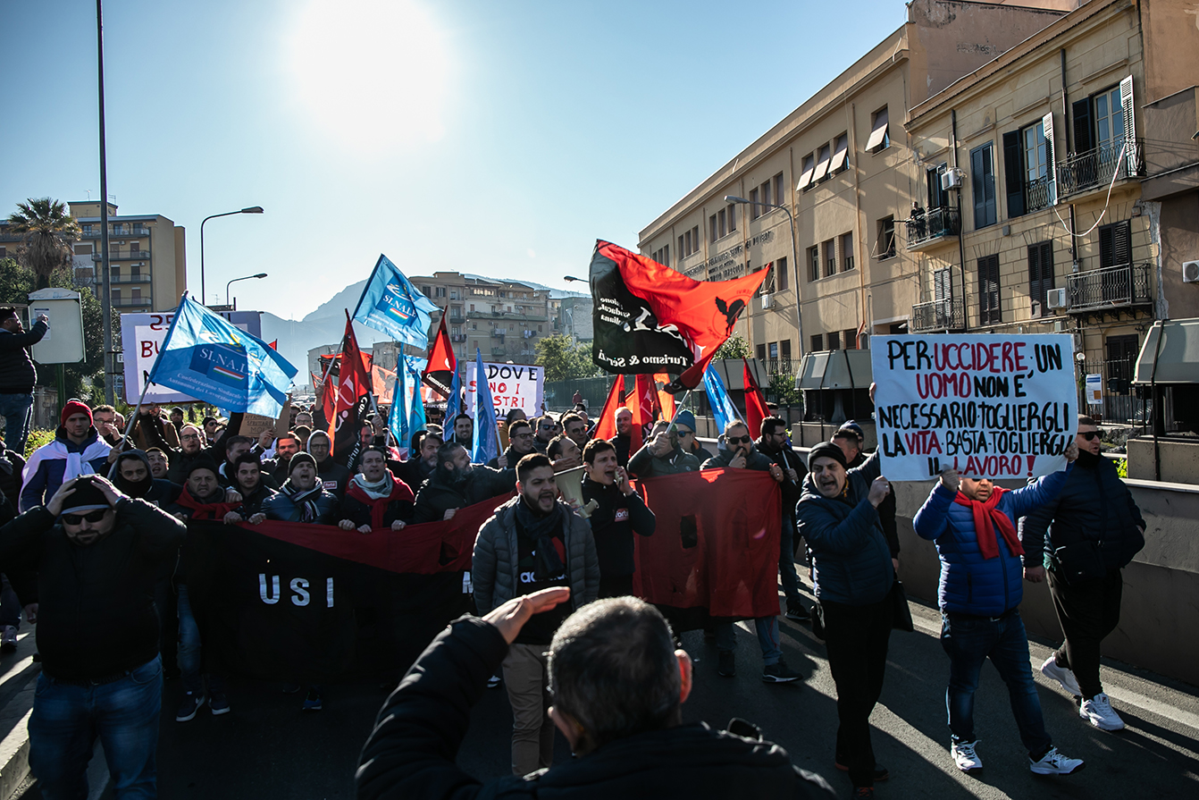 I sindacati USI e Sinalp hanno indetto una manifestazione davanti a Palazzo d'Orleans, a sostegno della vertenza che coinvolge oltre 500 lavoratori e le loro famiglie. «Musumeci deve dirci le sue intenzioni, se è un nostro alleato o un nostro nemico»
