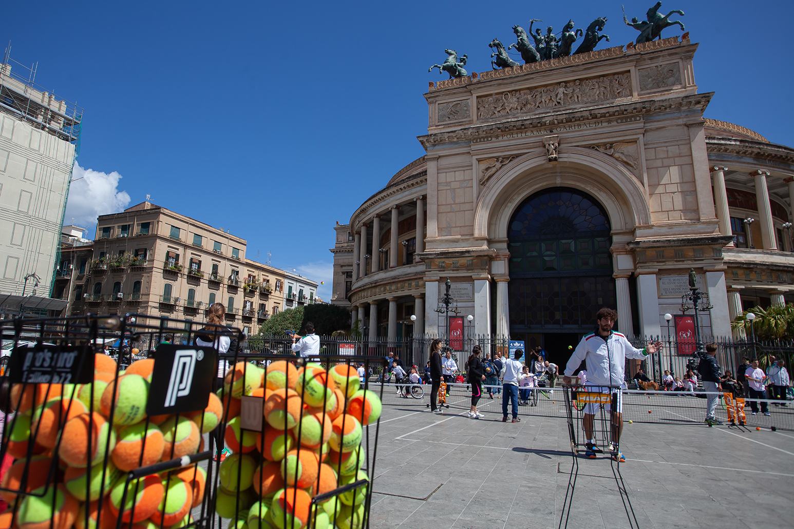 Da stamattina piazza Castelnuovo, nel cuore di Palermo, è trasformata in un grande circolo del tennis. In tre campi tracciati davanti all’ingresso del teatro Politeama è in corso una vera e propria festa del tennis. L’iniziativa è a cura della Fit Sicilia e del comitato organizzatore dei 30simi Palermo Ladies Open.