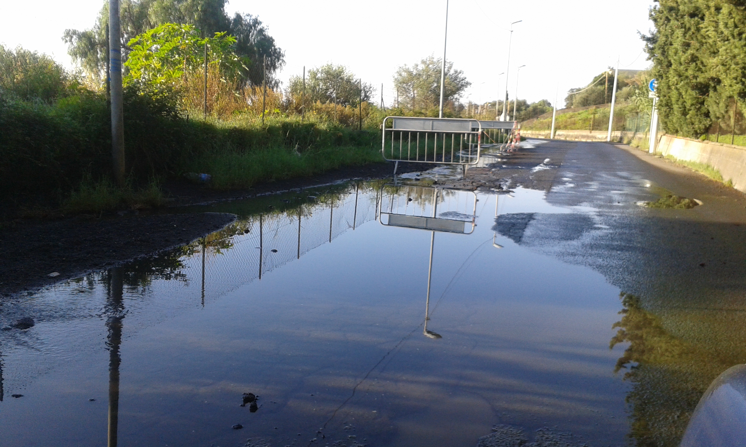 Una settimana dopo la prima segnalazione fatta a MeridioNews la situazione «è peggiorata – dice un automobilista che percorre via Nizzeti per andare a lavoro – adesso sembra un fiume, impossibile da guadare». La nuova segnaletica stradale – adottata pure nelle altre strade sulle quali scorre il fiumiciattolo – restringe la carreggiata in diversi punti, vieta il passaggio di mezzi a due ruote e impone il limite di velocità a dieci chilometri orari. «Sono costretto a rallentare, accostarmi al bordo – spiega il guidatore – e procedere a passo d’uomo», sarebbe questo il solo modo «per evitare le buche diventate ormai delle voragini». Fosse che in certi tratti diventano simili a dei laghetti, come davanti al cancello di un’abitazione poco distante dalla sorgente. «Da due mesi, per non bagnarmi scarpe e pantaloni – dice il residente – sono costretto a uscire di casa con gli scarponcini di gomma». Ma la preoccupazione più sentita dagli abitanti è rivolta al senso di pericolo «che tutta quest’acqua faccia franare il terreno sotto le strade», che costeggiano condomini, villette e più in generale edifici di vecchia e nuova costruzione.