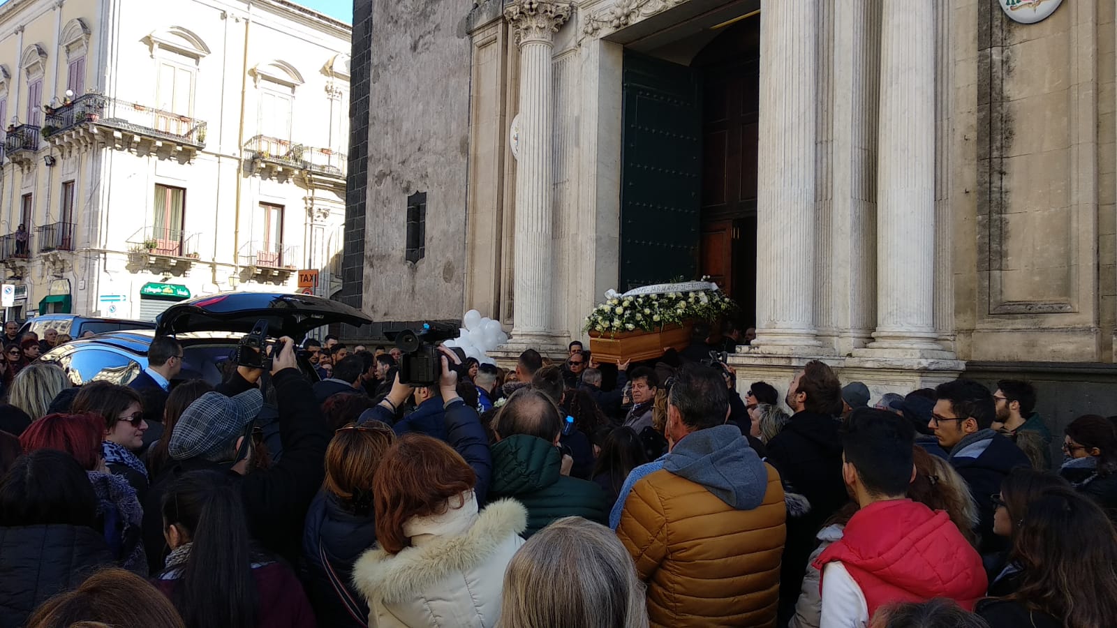 Il primo funerale è stato nella cattedrale in piazza Duomo, dove i familiari e gli amici della 21enne hanno accolto il feretro con un applauso commosso. Il padre, la madre e il fratello hanno seguito il rito accanto alla bara, mentre in prima fila, nella navata laterale, hanno preso posto il primo cittadino Stefano Alì e i componenti della giunta comunale. Presente anche la presidente del consiglio comunale, Sonia Abbotto, e gli esponenti della polizia municipale. A testimoniare il lutto cittadino anche un drappo nero sul gonfalone del Comune. All’uscita dalla chiesa decine di palloncini bianchi sono stati lasciati volare via, poco prima che il carro funebre si accingesse a lasciare piazza Duomo in direzione del cimitero.