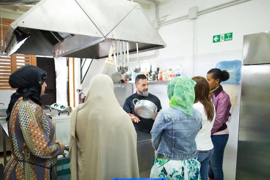 Agrigento, via Empedocle. Nei locali del ristorante Ginger – people&food, sei donne, provenienti da Pakistan, Etiopia, Marocco e Colombia, ascoltano incuriosite Carmelo Roccaro, presidente della cooperativa sociale Al Kahrub, mentre introduce il primo corso base di cucina destinato a donne migranti e rifugiate richiedenti asilo. C’è chi prende appunti, chi nasconde l’emozione dietro un sorriso e chi non vede l’ora di mettersi ai fornelli. Donne distanti per esperienze e origini ma unite dalla stessa passione: la cucina.