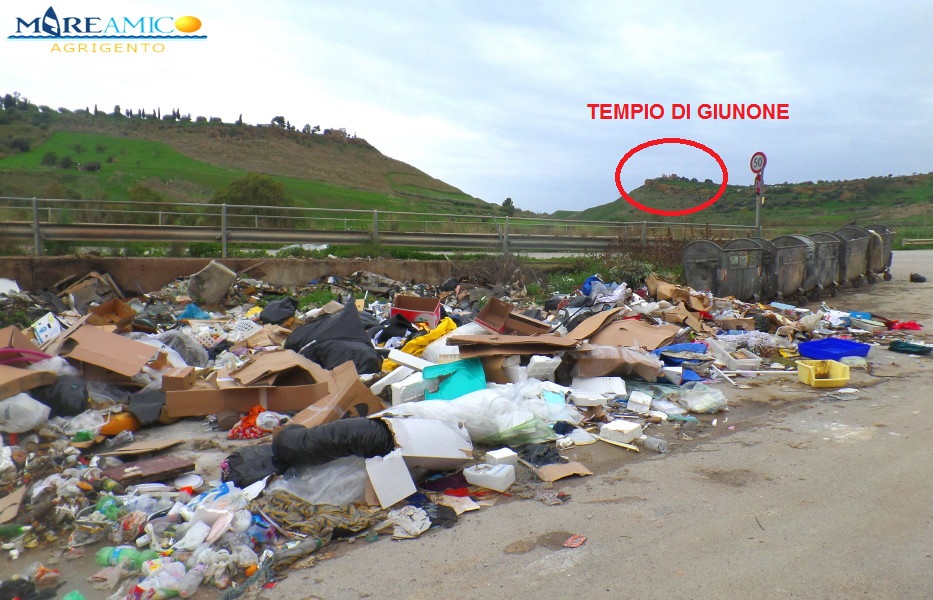 Spazzatura con vista sul tempio di Giunone. Accade ad Agrigento, dove l’associazione ambientalista Mareamico denuncia l’ennesimo caso di inciviltà, con una discarica abusiva che sorge in contrada Chimento, a poche centinaia di metri dai siti archeologici. L’associazione chiede alle autorità che si intervenga con un sistema di videosorveglianza. «L’unico modo per estirpare questa incivile abitudine è quella di piazzare le telecamere e sanzionare i trasgressori – si legge in una nota -. Mareamico lo ha fatto questa estate a Punta bianca, e oggi la discarica non esiste più».