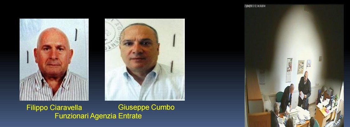 L’ordinanza è stata emessa dal giudice per le indagini preliminari del Tribunale di Agrigento Francesco Provenzano su richiesta del procuratore della Repubblica Renato Di Natale, dell’aggiunto Ignazio Fonzo e del sostituto Andrea Maggioni. In carcere sono finiti Antonio Vetro, consulente fiscale, Vincenzo Tascarella, funzionario dell’agenzia delle entrate, Giuseppe Cumbo, dipendente dell’Agenzia delle entrate, Giuseppe Castronovo, dipendente dell’Agenzia delle entrate; ai domiciliari con l’obbligo del braccialetto elettronico, Pasquale Pietro Leto, direttore dell’Agenzia delle entrate di Agrigento, sottoposto alla misura degli arresti domiciliari con obbligo di braccialetto elettronico; Filippo Ciaravella, funzionario dell’Agenzia delle entrate, Salvatore La Porta, imprenditore, Marco Campione, Michele Daina, Antonino Migliaccio; obbligo di presentazione ai carabinieri per Francesca Leto e Pietra Callea; divieto temporaneo per otto mesi dell’esercizio delle professione medica per Giovanni Crapanzano e per sei mesi a Santo Pitruzzella.