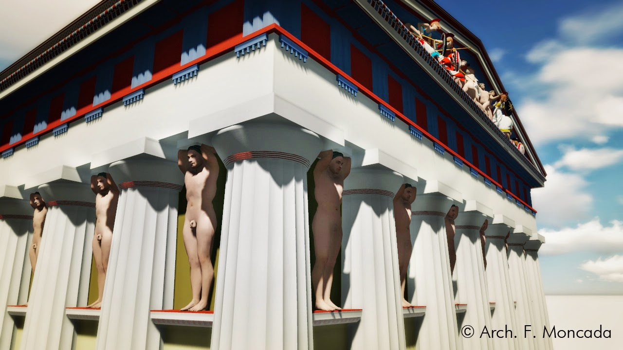 «È stato un lavoro molto entusiasmante – spiega Moncada – che nasce dal mio amore per l’archeologia, per il nostro patrimonio artistico e per i programmi tridimensionali. Non ho percepito alcun guadagno da questo progetto, che è il frutto del tempo che ho sottratto al mio lavoro da architetto e alla mia famiglia. Ho dovuto studiare molto per realizzare la ricostruzione, ho consultato diversi studiosi e osservato altri esempi di strutture templari oltre a numerosi documenti, antichi anche di secoli, che descrivevano la fisionomia del tempio. Mi sono inoltre basato sugli studi dell’archeologo Pirro Marconi e sulle testimonianze di fonti classiche come Diodoro Siculo». Ecco quindi come dovevano apparire questi affascinanti edifici del passato, variopinti e pieni di decorazioni.