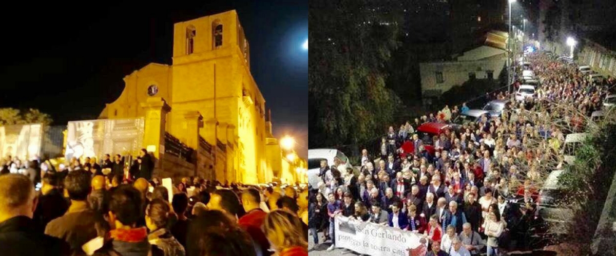 Grande partecipazione per l'iniziativa promossa dall’arcivescovo Montenegro, per accendere i riflettori sul dissesto del colle San Gerlando. Continuano ad allargarsi le crepe che lo attraversano e che passano nel Duomo. I fondi ci sono ma non vengono spesi. «In caso di crollo come si difenderà chi ha temporeggiato?»