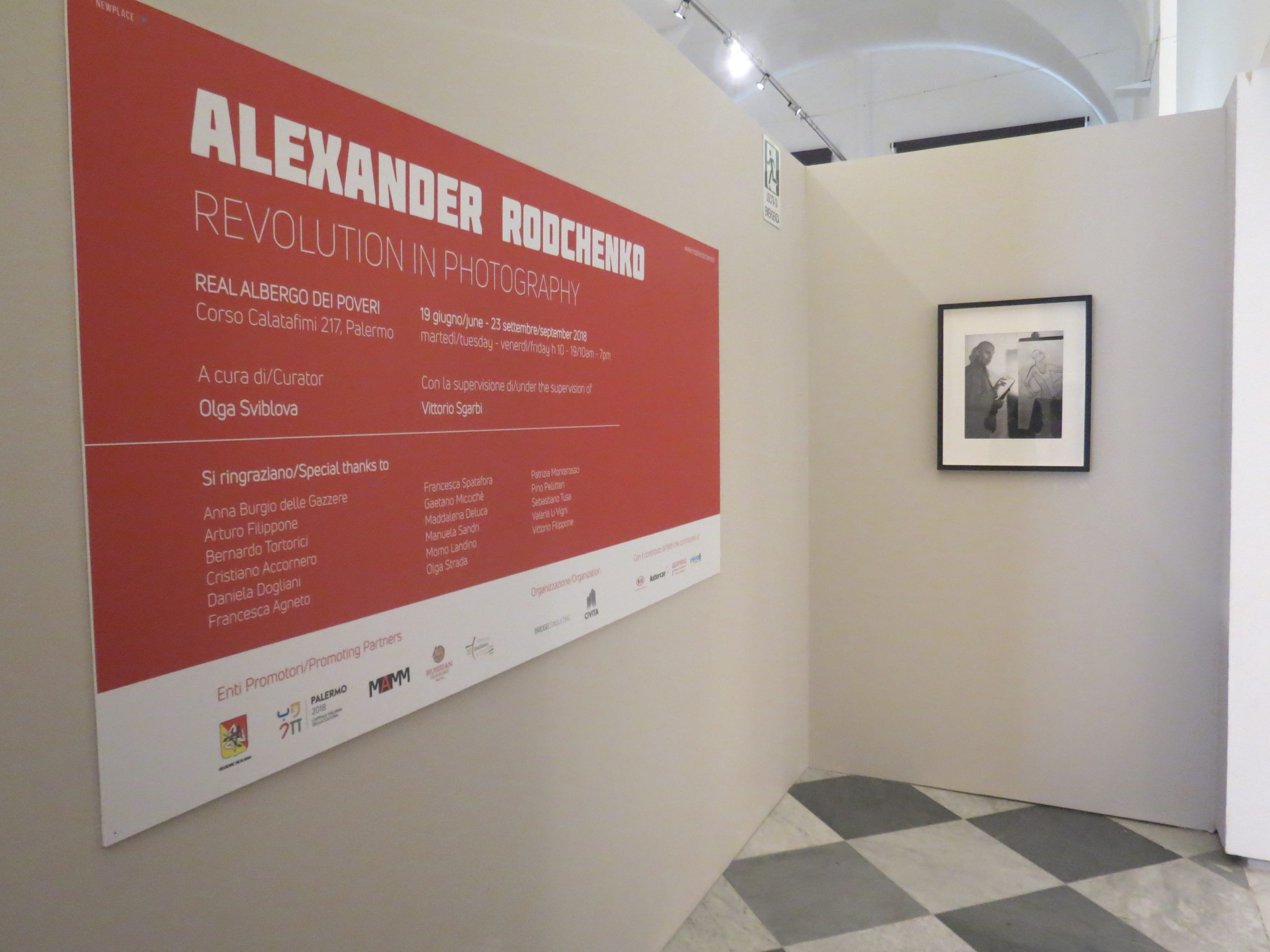 Esposte scene di vita quotidiana, ma anche ritratti di amici e parenti immortalati dal rivoluzionario padre della fotografia sovietica. «Se si desidera insegnare all’occhio umano a vedere in una nuova maniera – scriveva Rodchenko nel suo diario – è necessario mostrargli gli oggetti quotidiani e familiari da prospettive ed angolazioni totalmente inaspettate». Fotografo-pensatore della prima metà del XX secolo, Alexander Rodchenko ha lasciato testimonianze e riflessioni sull’arte: appunti, bozze, articoli e diari, a testimonianza di un drammatico conflitto tra la ragione e l’impulso creativo. L’esposizione, promossa dall’Assessorato Regionale dei Beni Culturali e dell’Identità Siciliana, si inserisce in un piano di collaborazione con il Ministero dei Beni Culturali della Federazione Russa.