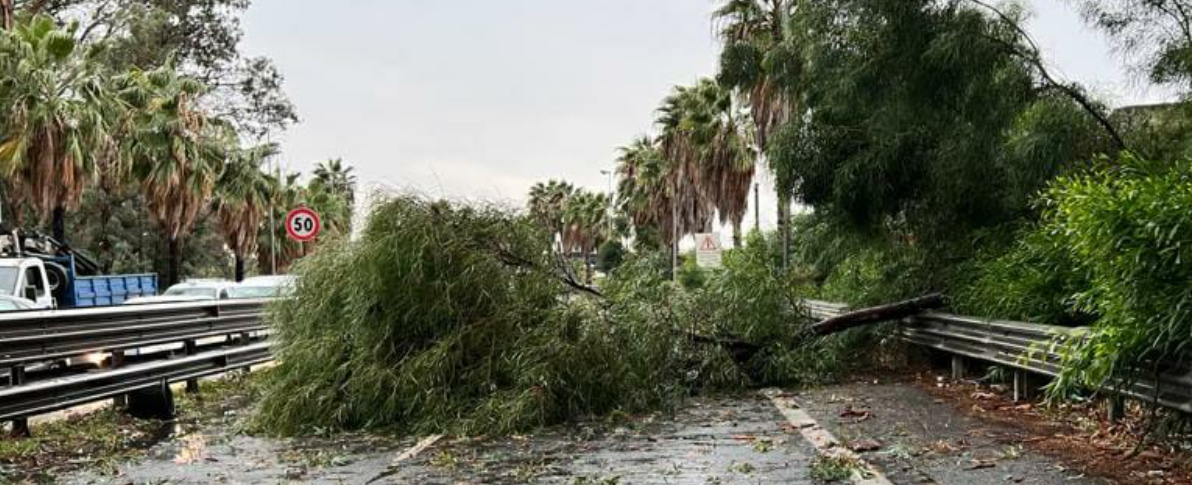 A Nicolosi un grosso albero è caduto sopra un mezzo della Misericordia. L’automobile era parcheggiata nei pressi della piazza principale, lungo via Etnea. A Tremestieri Etneo, all’interno del parco Maria Grazia Cutuli, dal tetto della biblioteca comunale di via Magna Grecia, nella zona di Tivoli si è staccata una copertura in plastica. Sul posto l’assessore alla protezione civile e una volante della polizia municipale. A Gravina, in via Vecchia San Giovanni – una traversa di via Etnea – un albero è caduto impedendo la circolazione. La via è stata chiusa al traffico e sul posto c’è una volante della polizia locale. «Stanno già provvedendo a tagliarlo e a rimuoverlo», assicurano gli agenti a MeridioNews. Problemi anche sulla statale 385, all’altezza di Lentini, dove l’Anas ha chiuso al transito l’arteria in attesa di rimuovere un albero dalla carreggiata.