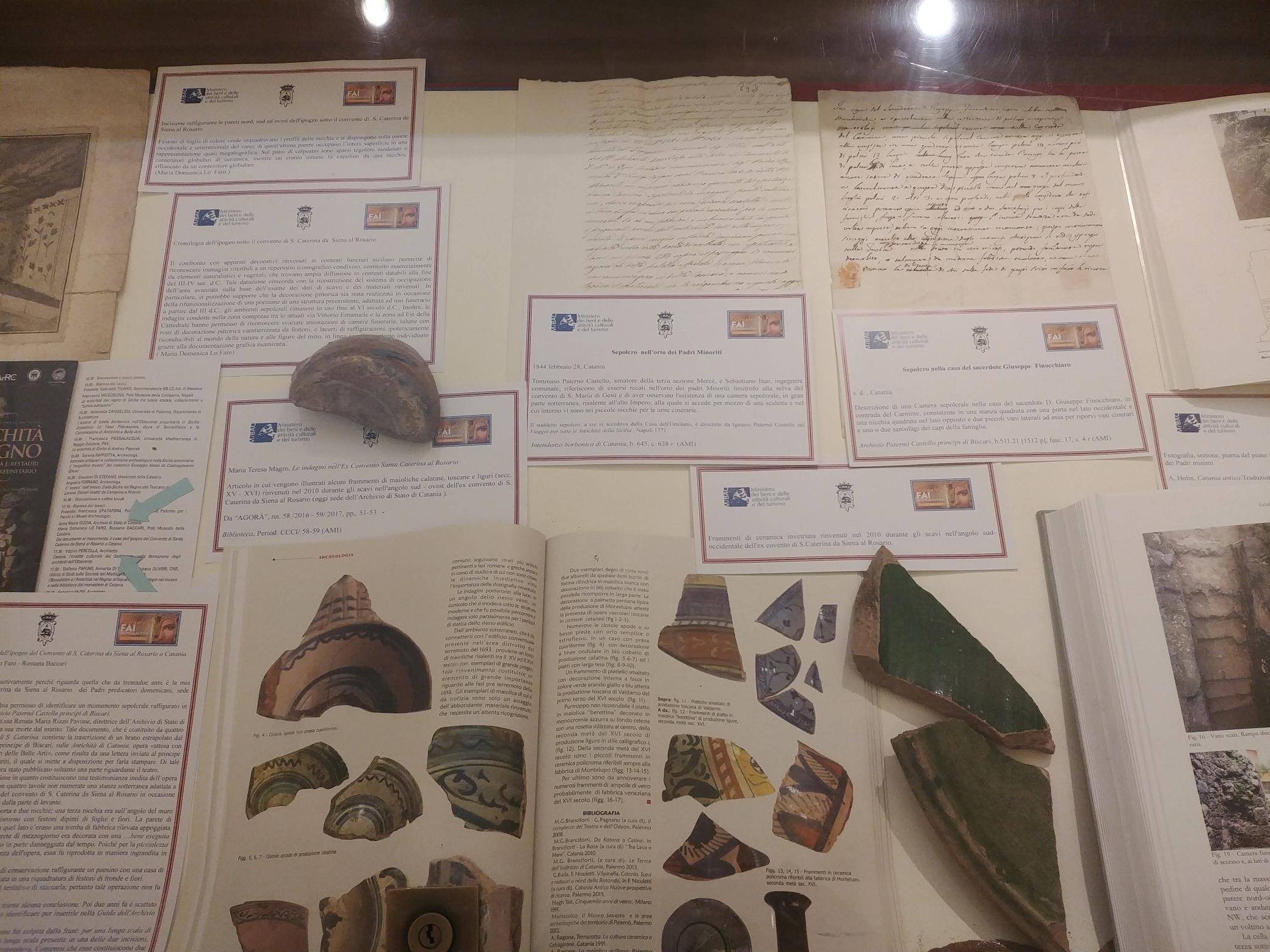 La terza sezione, curata dalla direttrice dell’archivio di Stato Anna Maria Iozzia, è dedicata alla documentazione relativa sia alle antichità che alle difese della città. Un ruolo notevole nella riscoperta delle antichità catanesi è stato svolto da Ignazio Paternò Castello, quinto principe di Biscari, che nel 1748 ottenne dal tribunale del Real patrimonio il permesso – riconfermato, tra l’altro, vent’anni dopo – di scavare per arricchire il suo museo, che è uno dei più importanti d’Europa. Grazie alla sua attività sono state riportate alla luce numerosi monumenti, complessi termali ed edifici sepolcrali, tra i quali l’ipogeo che si trova sotto l’ex convento di Santa Caterina da Siena al Rosario, oggi sede dell’archivio di Stato di Catania.