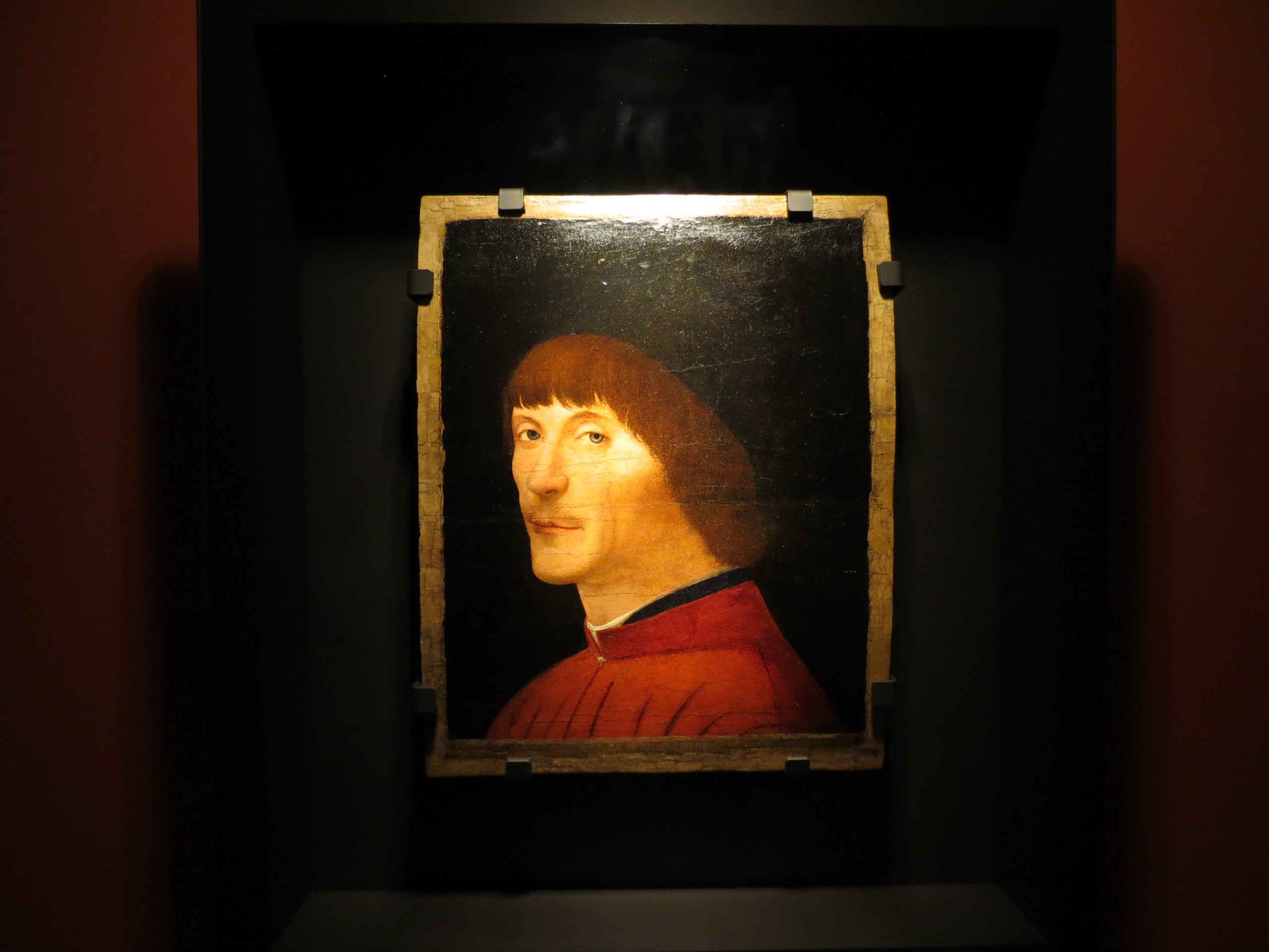 La rassegna continua, nella seconda sala, con “Ritratto d’uomo”. La piccola tavola di noce incarna gli aspetti peculiari della pittura Antonelliana: luce, resa emotiva e indagine psicologica. L’uomo è ritratto su uno sfondo scuro, a mezzo busto, tagliato poco sotto la spalla, indossa un abito rosso. Lo sguardo è rivolto verso l’osservatore. «Antonello da Messina fu il primo artista capace di cogliere l’intima essenza di un uomo – spiega Villa – attraverso il suo sguardo, il suo sorriso, attraverso gli elementi espressivi più potenti, è riuscito a dipingere proprio la nostra anima».