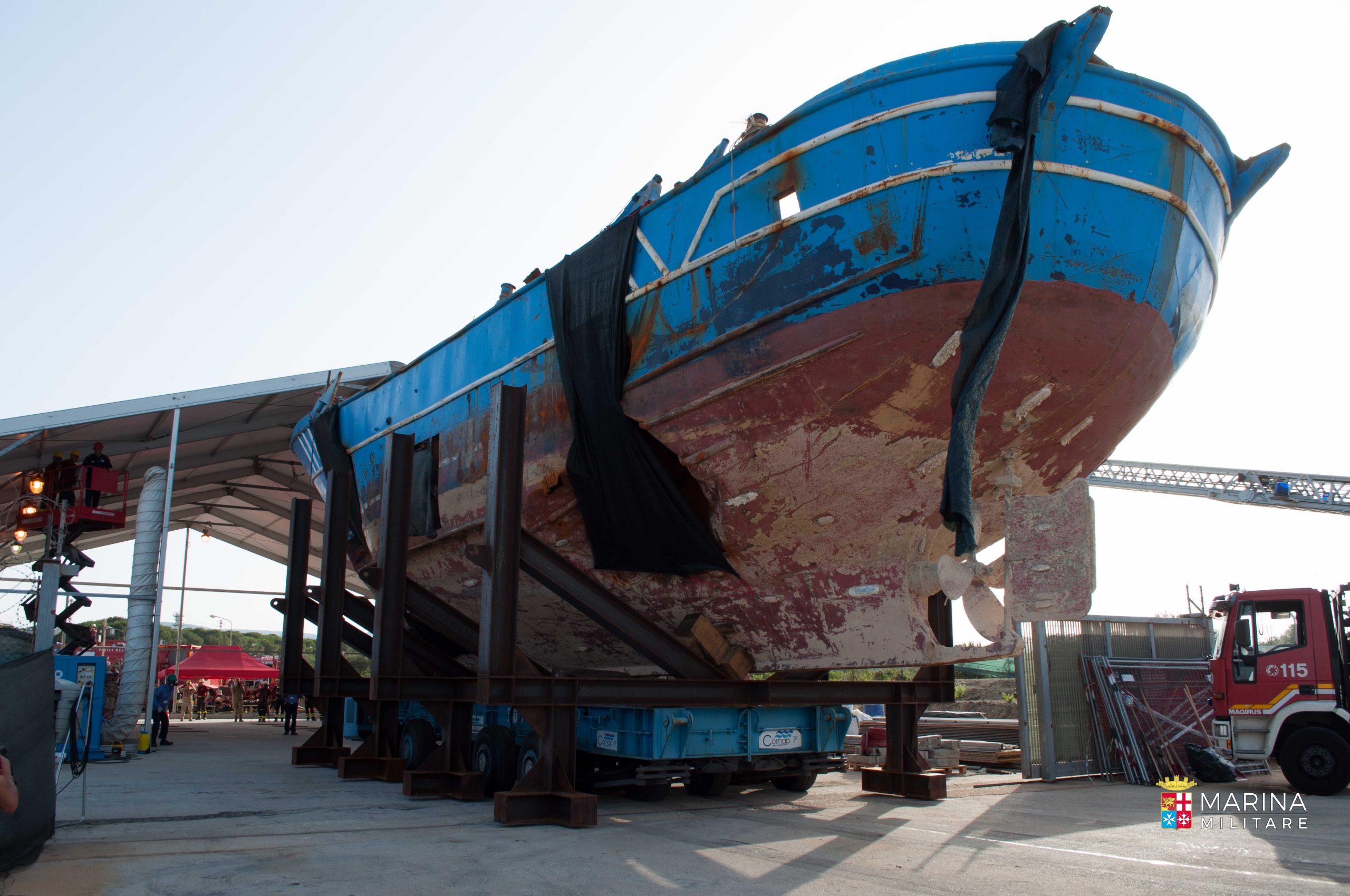Le attività per recuperare l’imbarcazione sono state difficili e già negli scorsi mesi hanno impegnato notevolmente le autorità. Impegno gravoso che oggi caratterizza anche l’estrazione dei corpi. In tal senso la marina militare ha realizzato un’area per supportare il personale impegnato in un compito di certo non semplice, da un punto di vista sanitario ed emotivo. Tra cui un posto medico avanzato e un consultorio psicologico. Presenti inoltre due restroom, una sala operativa di supervisione audiovideo, una stazione di ricarica autorespiratori ad aria compressa e due sale riunioni. E poi anche una zona di decontaminazione e una centrale di energia elettrica e aria refrigerata, oltre alla già citata tensostruttura suddivisa.