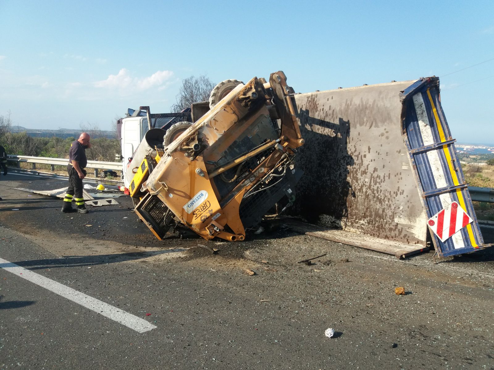 L'autocarro viaggiava in direzione di Catania, quando per cause ancora da accertare si è capovolto. Sul posto personale dell'Anas e forze dell'ordine. Guarda le foto