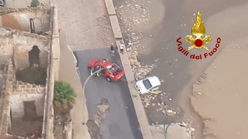 Avola, strade allagate dopo forte temporale Auto cade sulla spiaggia, pompieri in azione