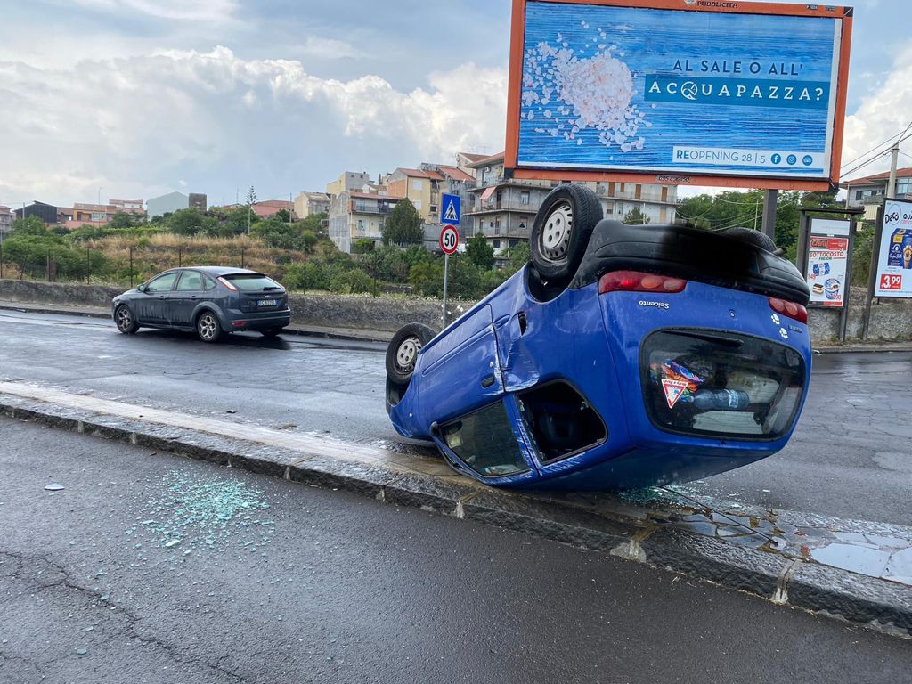 Incidente autonomo a Belpasso. È successo all’ingresso Sud nel paese, nei pressi del cimitero. Poco prima delle 13, una vettura (una Fiat 600), che viaggiava in direzione della centrale via Roma, si è ribaltata sullo spartitraffico di via Garofalo. La dinamica del sinistro è ancora da accertare ma, stando a una prima ricostruzione dei fatti, pare che le cause siano legate all’asfalto reso scivoloso dalla pioggia.