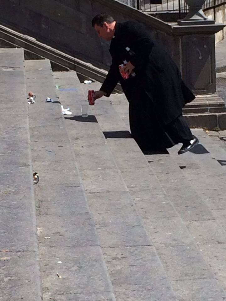 Biancavilla, prete-spazzino dopo il sabato sera «Succede ogni fine settimana, servono le multe»
