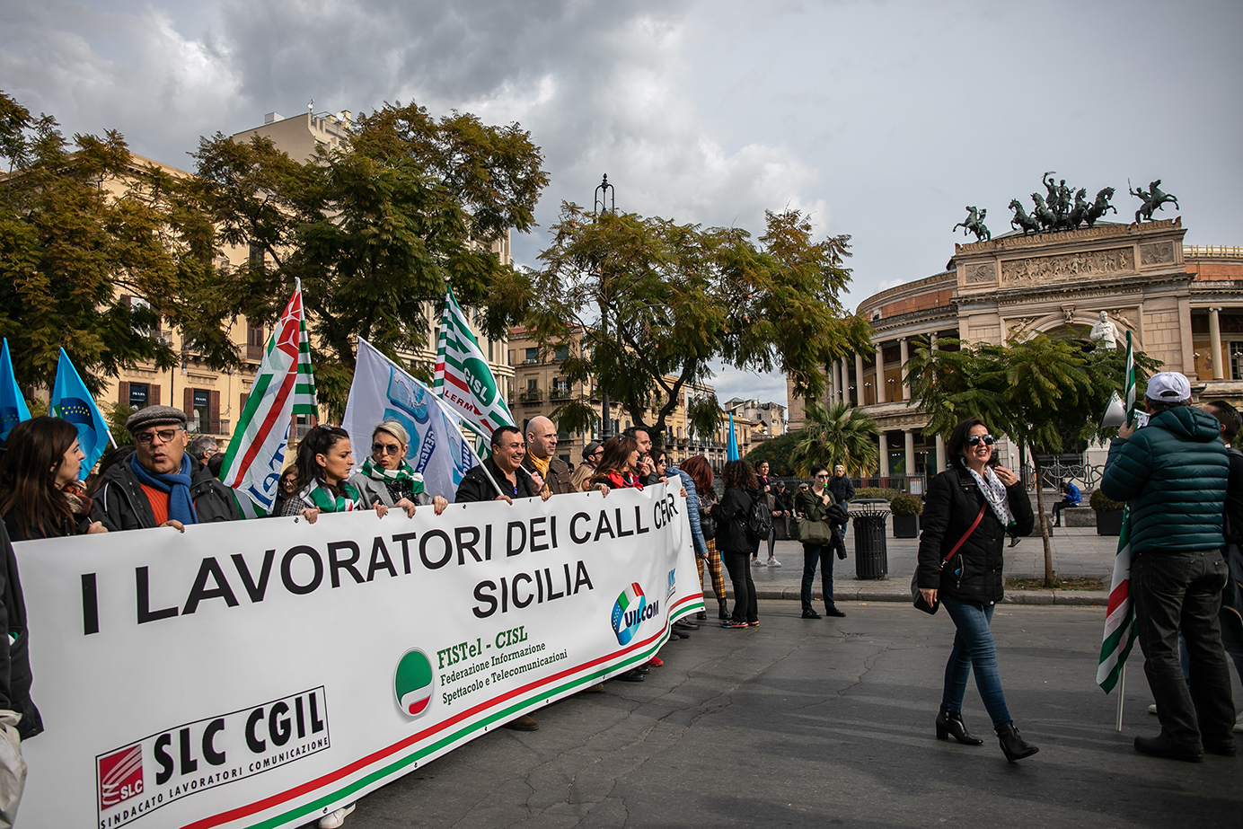 Hanno partecipato solo i lavoratori delle aziende in outsourcing di Palermo, mistero sul treno che da Catania doveva far arrivare altri manifestanti. Oltre ad Almaviva, presenti in piazza anche i dipendenti delle aziende Experia, Comdata e Abramo