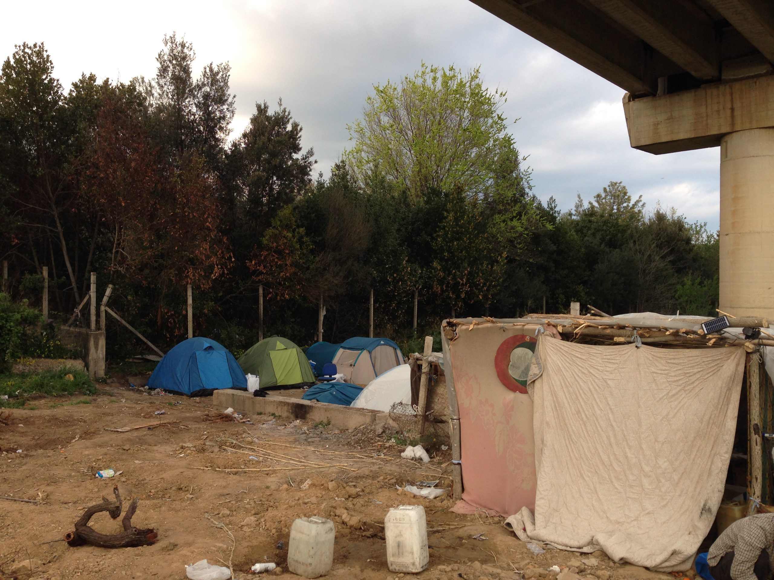Gli altri, dopo lo sgombero del campo avvenuto lo scorso 17 marzo, sono tornati a vivere sotto lo stesso ponte, senz’acqua e bagni, dormendo in tende da campeggio oppure nelle capanne di legno che gli africani sono abili a costruire. Fanno la spola per portare acqua con i bidoni adagiati sui carrelli di qualche supermercato. C’è chi si carica sulle spalle fronde di rami. Serviranno per fare legna da bruciare per riscaldarsi nella notte.