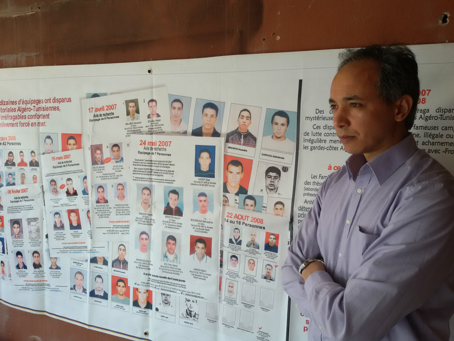 Kouceila Zerguine è un avvocato algerino e rappresenta il Collettivo dei migranti dispersi in mare. Tra i volontari internazionali, insieme a lui, c'è anche Imed Soltani, in rappresentanza delle madri di tunisini dispersi durante il viaggio verso l’Italia. O gli attivisti messicani che si battono per la stessa causa