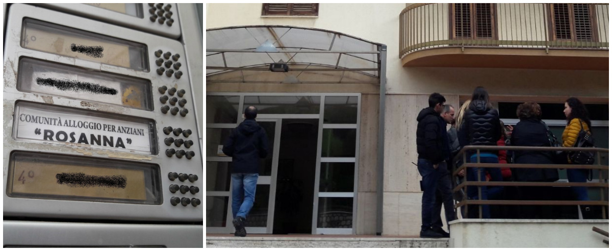 Davanti al condominio della centralissima via Segesta a Castellammare del Golfo è un via vai di parenti che cercano di sapere le condizioni dei propri cari, ospiti della casa di cura ribattezzata dai carabinieri «la casa degli orrori». Si tratta della Comunità alloggio per anziani Rosanna, sequestrata e affidata a un amministratore giudiziario nominato dalla Procura della Repubblica. In manette sono finiti i due titolari della struttura, Rosanna Galatioto e Matteo Cerni, e altri due operatori: Anna Maria Bosco e Marianna Rizzo.