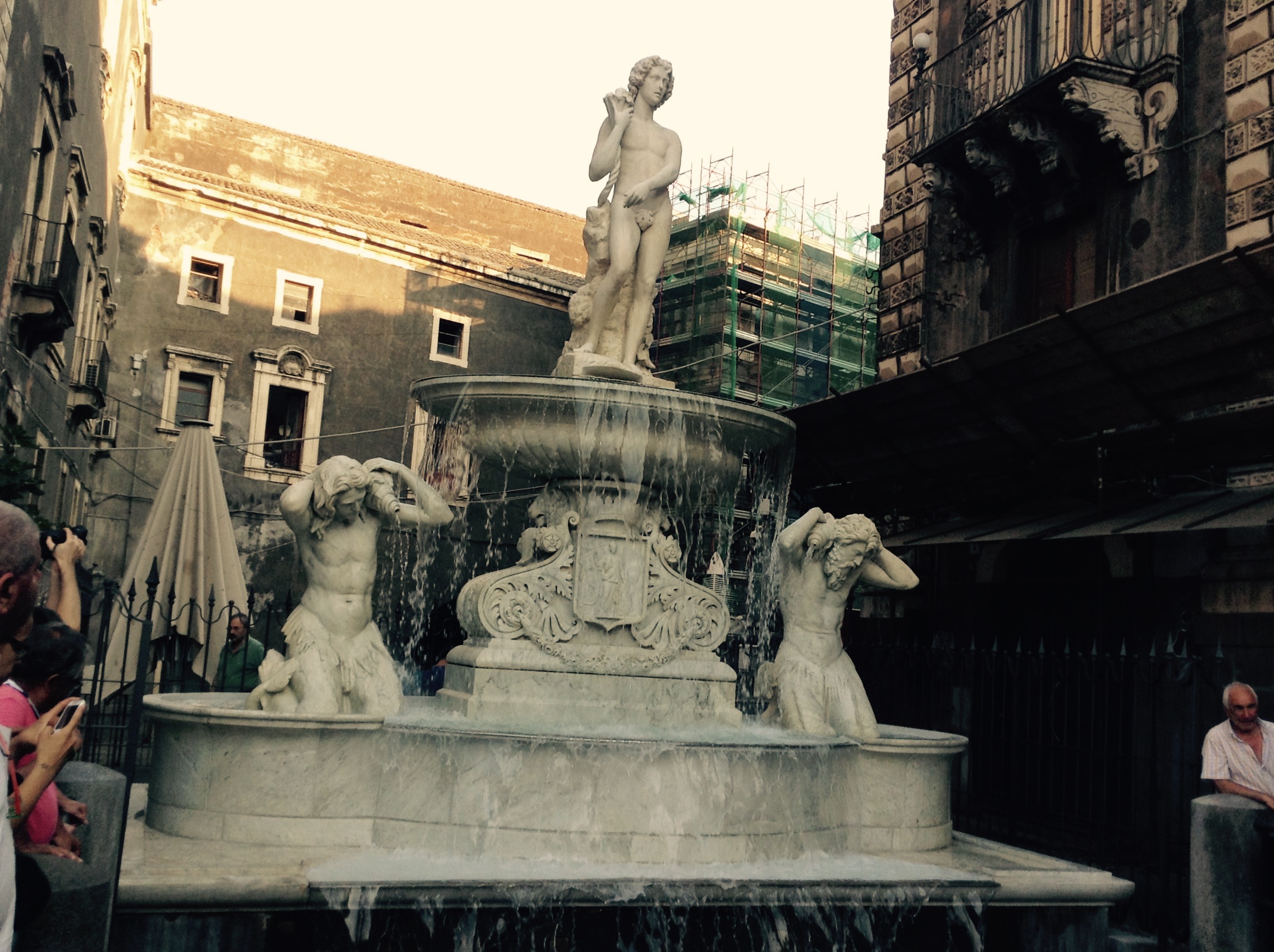 I lavori di restauro del celebre monumento sono completi. A riconsegnarlo alla città, durante una cerimonia, sono stati il sindaco Enzo Bianco, il direttore dell'Accademia di Belle Arti etnea Virgilio Piccari e la soprintendente ai Beni Culturali Fulvia Caffo. «Il dio Amenano non ne poteva più di essere coperto dal lenzuolo»