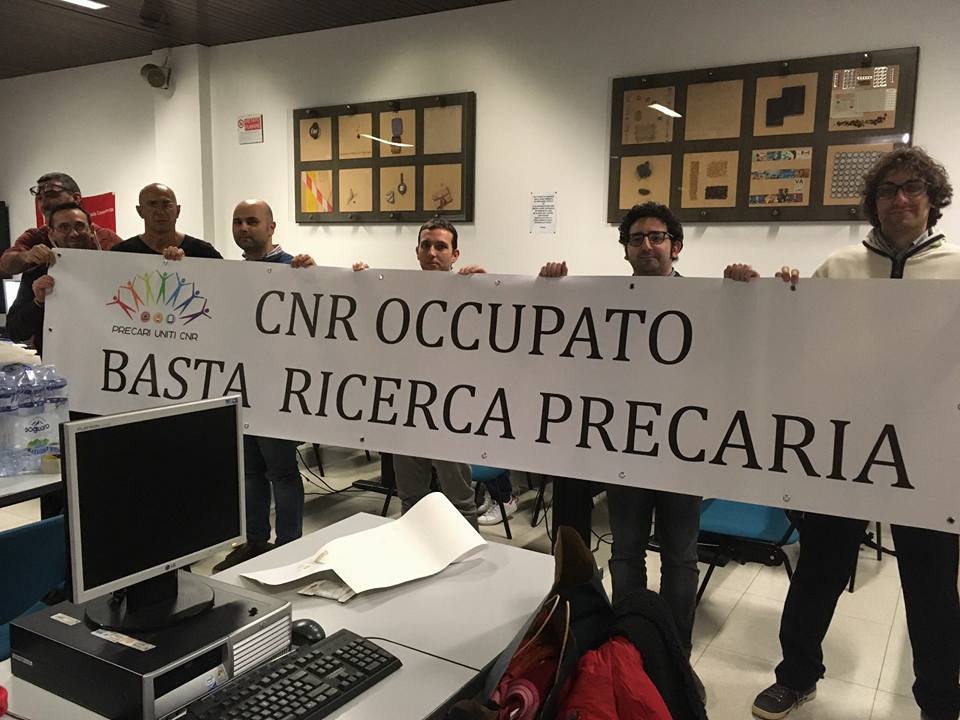 «Attualmente – dice Annalisa Pinsino, ricercatrice a Palermo e precaria da una quindicina d’anni- i nostri stipendi vengono pagati con i fondi dei bandi di ricerca. Chiediamo oggi che lo Stato si faccia carico delle stabilizzazioni predisponendo un finanziamento ordinario adeguato e mettendo fine a situazioni di precariato che vanno avanti da troppo tempo». La protesta è partita da Pisa il 3 novembre scorso e a poco a poco sono state coinvolte tutte le varie sedi regionali del Cnr, fino a coinvolgere anche la Sicilia dove l’assemblea è partita il 16 novembre e dal 21 novembre è diventato presidio permanente in un’aula.
