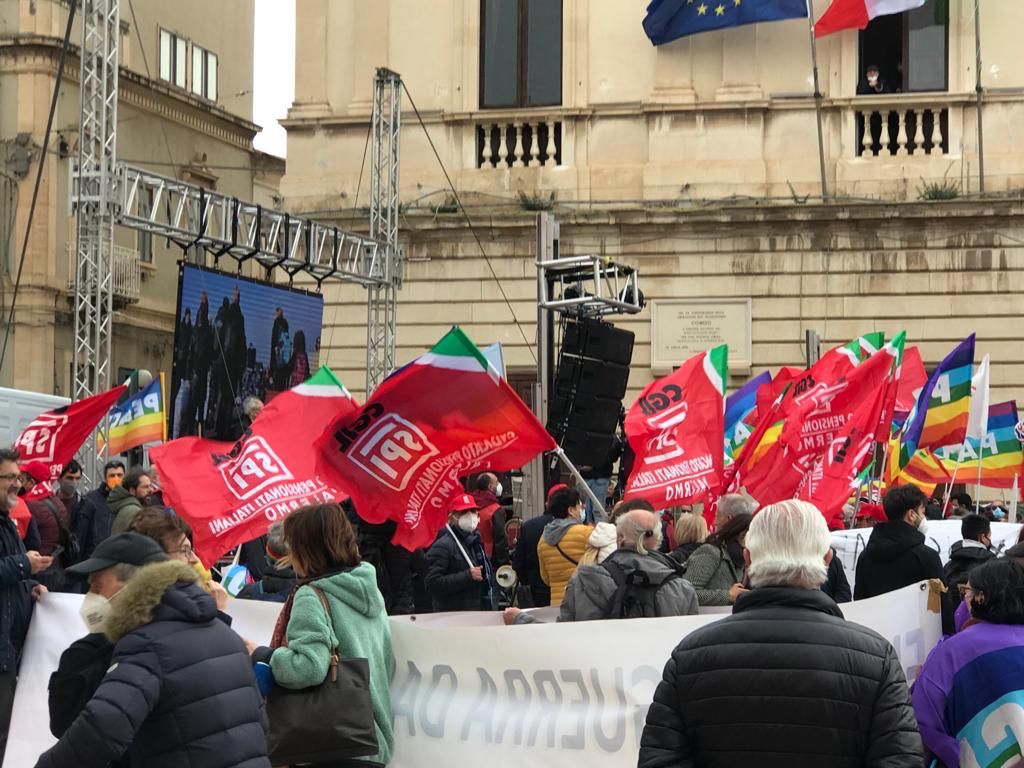 Nella cittadina del Ragusano le sigle sindacali e movimenti hanno unito i loro intenti per dire no al conflitto nell'Est europeo. Tutto ciò a 40 anni dalla marcia contro l'installazione dei missili: «Rivendicare il disarmo globale», afferma Cgil Ragusa. Guarda le foto