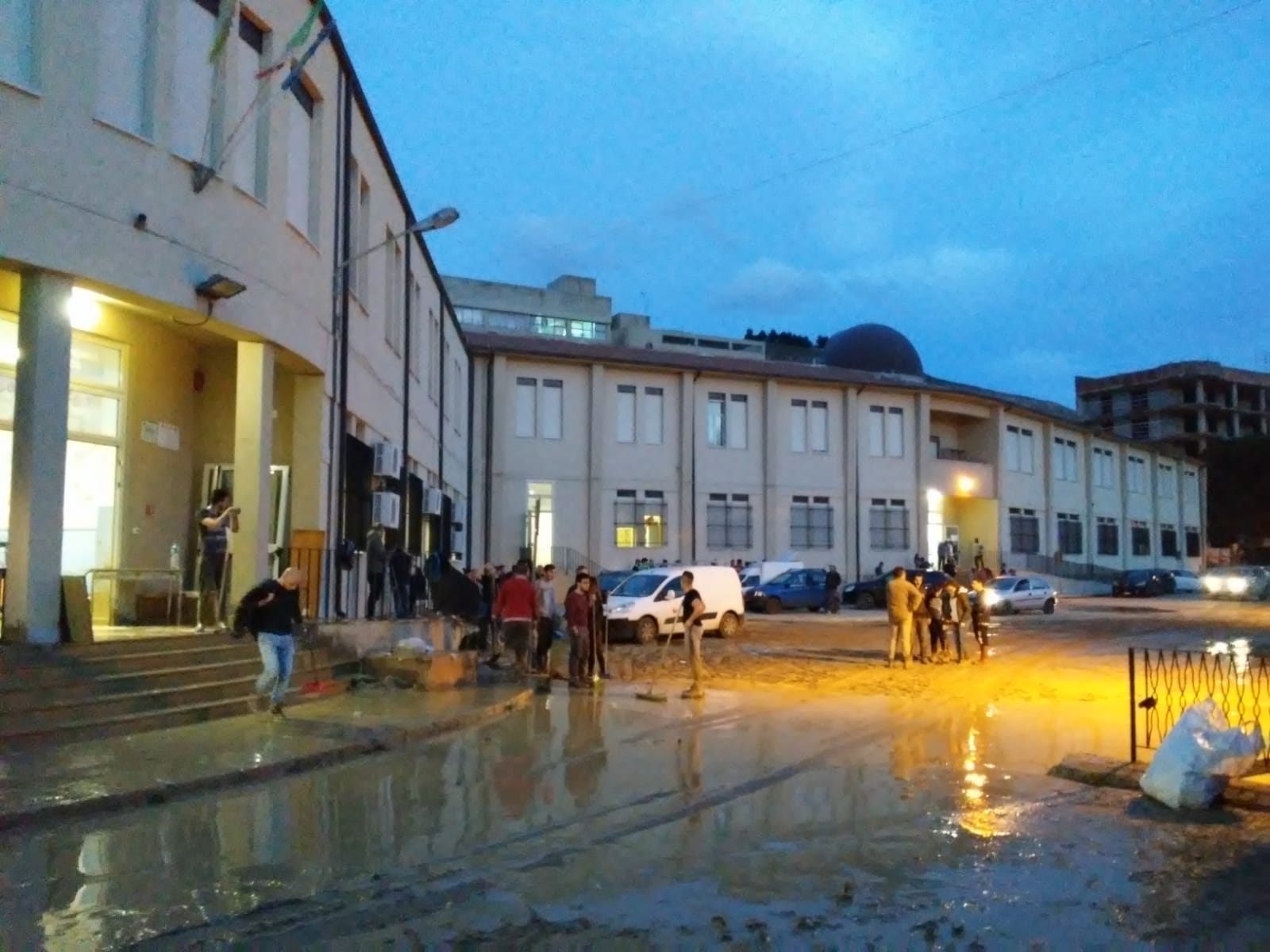 Oltre un centinaio di ragazzi, insieme a funzionari del Comune, professori di scuola e normali cittadini, ragazzi delle realtà parrocchiali, scout in divisa coi loro fazzoletti ben in vista. In quel Comune commissariato per mafia e che tornerà al voto il prossimo 25 novembre, hanno smesso i panni partigiani della campagna elettorale, per ritrovarsi a scuola insieme, guanti e pale, a ripulire. Tra quei corridoi in cui hanno studiato, nelle aule frequentate quando erano solo studenti. Giovani attivisti del Movimento 5 Stelle al fianco di quelli di Legambiente, iscritti al Pd insieme ai militanti di centrodestra. «I segni sul muro – racconta un volontario – indicano con chiarezza che ci fossero almeno 40 centimetri d’acqua. Noi ne abbiamo trovati meno, ma ovviamente tutto il pianoterra era devastato».