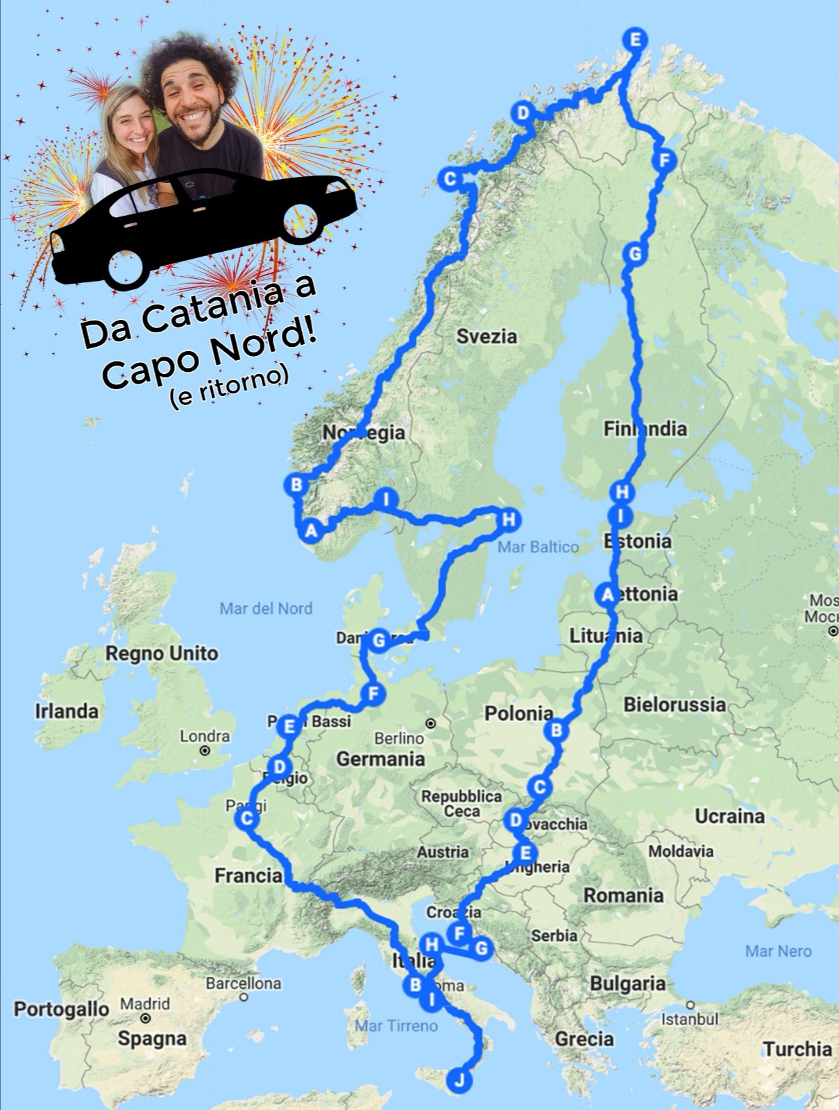 Catania–Capo Nord, non solo andata. Per i giovani catanesi Francesco Di Blanca e la compagna Veronica Milano, esperti viaggiatori, il ritorno in Sicilia è sempre parte del viaggio. Ma la partenza ormai è d’obbligo. L’ultima impresa è quella iniziata a giugno e completata in 135 giorni utili, a bordo di una Ford Fiesta immatricolata nel 2004, per attraversare lo stivale fino a Capo Nord, passando per Francia, Belgio, Paesi Bassi, Germania e Scandinavia. E poi per Finlandia, Lettonia, Polonia e Croazia. In un viaggio di incontri con culture, natura, servizi e civiltà. «Ci spostiamo con un ritmo tutto nostro» racconta Francesco a MeridioNews.
