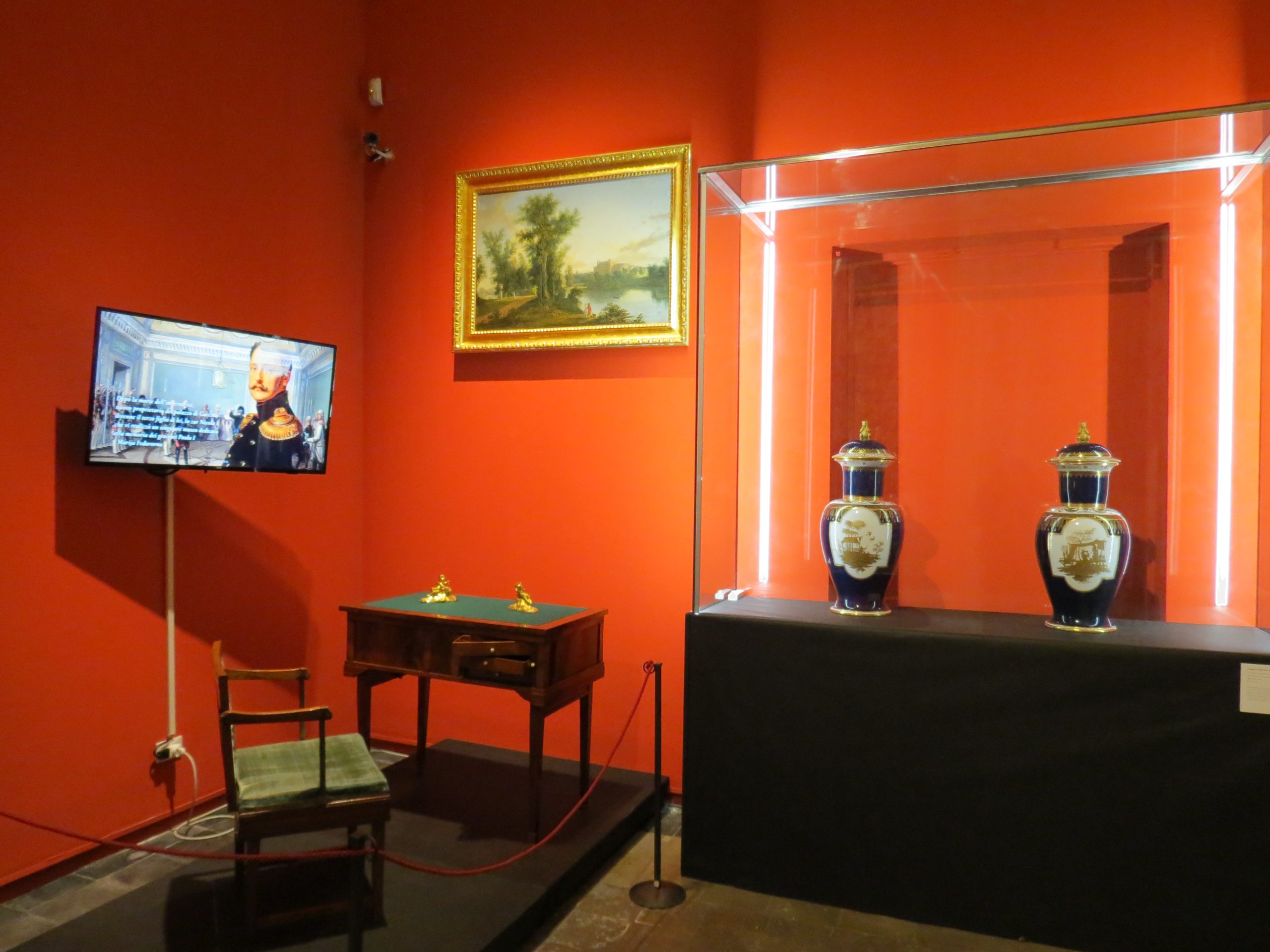 Nella quarta sala, troveranno spazio gli oggetti custoditi dal Museo Pavlosk: porcellane francesi, dipinti, sculture, abiti ed uno splendido cofanetto in porcellana finissima rivestita d’oro, cobalto e velluto. In mostra anche la pipa e il bocchino per narghilè di Alessandro II e l’abito di Caterina II, l’imperatrice russa illuminata fondatrice del primo istituto d’istruzione superiore femminile in Europa. «Inizialmente eravamo tutti un po’ preoccupati – racconta il direttore del Museo Gatchina, Vasiliy Pankratov – per la prima volta quattro musei insieme spedivano in viaggio le proprie opere. Teniamo tanto ai nostri oggetti e non amiamo l’idea di mandarli fuori dai nostri musei. Adesso però, vedendo la mostra, mi ritengo molto soddisfatto».