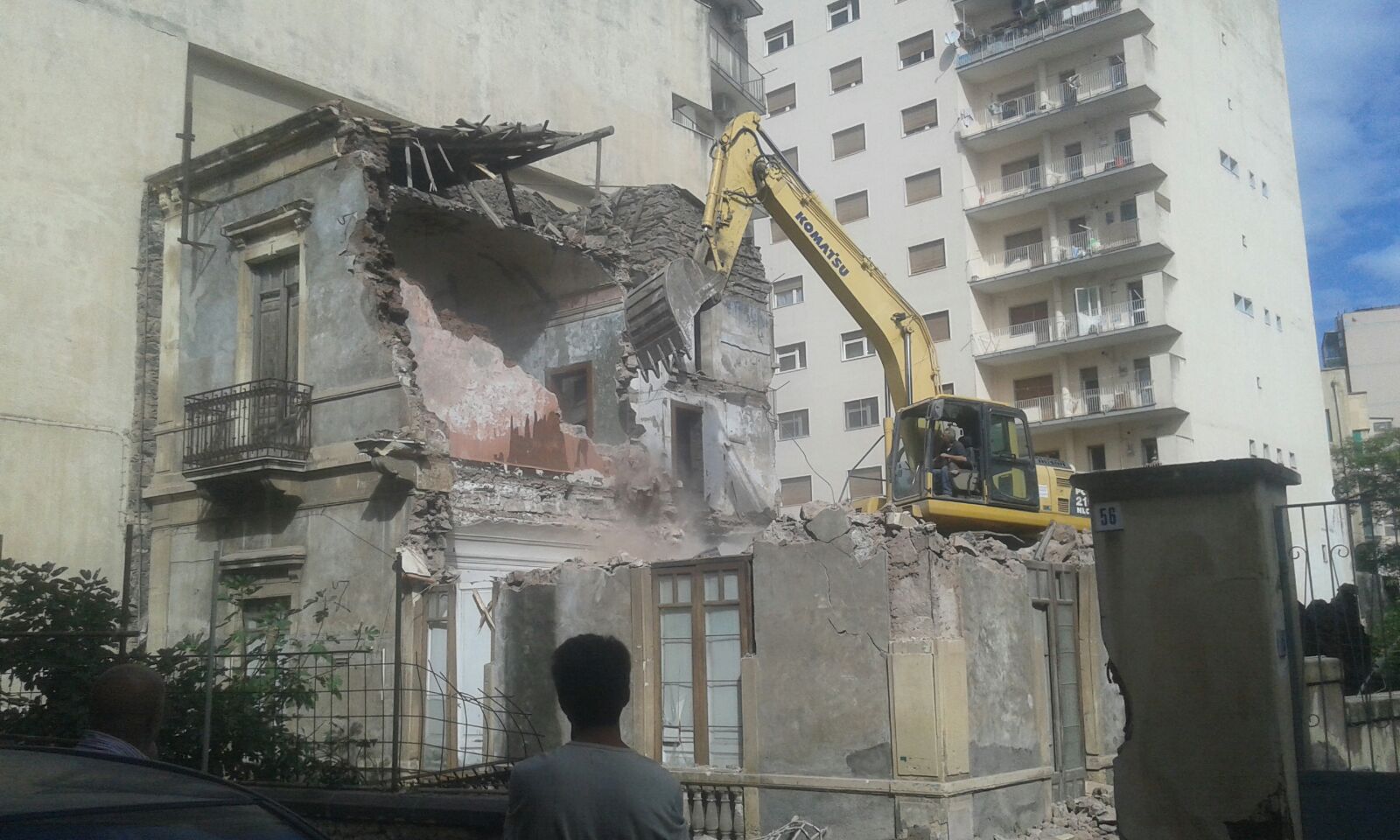 Catania bene comune, Matteo Iannitti, che si riferisce alla demolizione – iniziata questa mattina – di un immobile ottocentesco in via Ciccaglione, in zona Borgo. L’edificio è una palazzina «particolare perché ha un giardino enorme che supera l’arena Adua e arriva sino a San Niccolò al Borgo». Il complesso – con tetti stuccati e pavimentazione antica – è uno dei tanti esempi di architettura di stile liberty che vanta il capoluogo etneo. «Quanto accaduto è un fatto molto triste», continua Iannitti. Il riferimento nostalgico del leader di Catania Bene Comune è all’abbattimento, a partire dagli anni cinquanta in poi, di numerose strutture di particolare pregio artistico a fronte dell’edificazione di nuovi palazzi. Nonostante, sulla carta, il bene di via Ciccaglione comunque non ricada nella zona A del Piano regolatore generale redatto da Luigi Piccinato nel 1969. Ovvero l’area che per legge è tutelata dalla Soprintendenza ai beni archeologici.