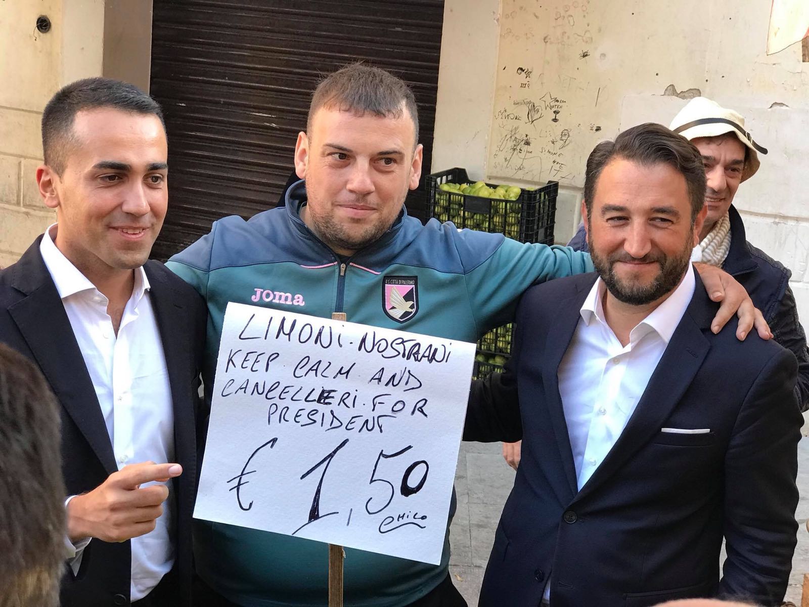 Dal referendum costituzionale targato Renzi al Rosatellum bis. Ancora una volta il punto di riferimento politico palemitano si trova a Ballarò è ha un volto ben preciso: dietro un banchetto di cassette limoni c’è il venditore ambulante Armando Marascia, ormai una celebrità. I suoi cartelli hanno fatto il giro del web, al punto da richiamare il leader del M5s Luigi Di Maio. Oggi, infatti, il candidato premier dei Cinque Stelle si è presentato di buon mattino al mercato storico del capoluogo, insieme al candidato alla presidenza della Regione siciliana Giancarlo Cancelleri. Un tuffo tra gli odori e colori del cuore pulsante di Palermo: i venditori di frutta, di pesce, i pentoloni per fare la ricotta. Il leader pentastellato si è ferma con tutti, pronto a stringere mani e a scattare foto, a scambiare qualche parola, tra applausi e ovazioni, ma il vero obiettivo era lui.