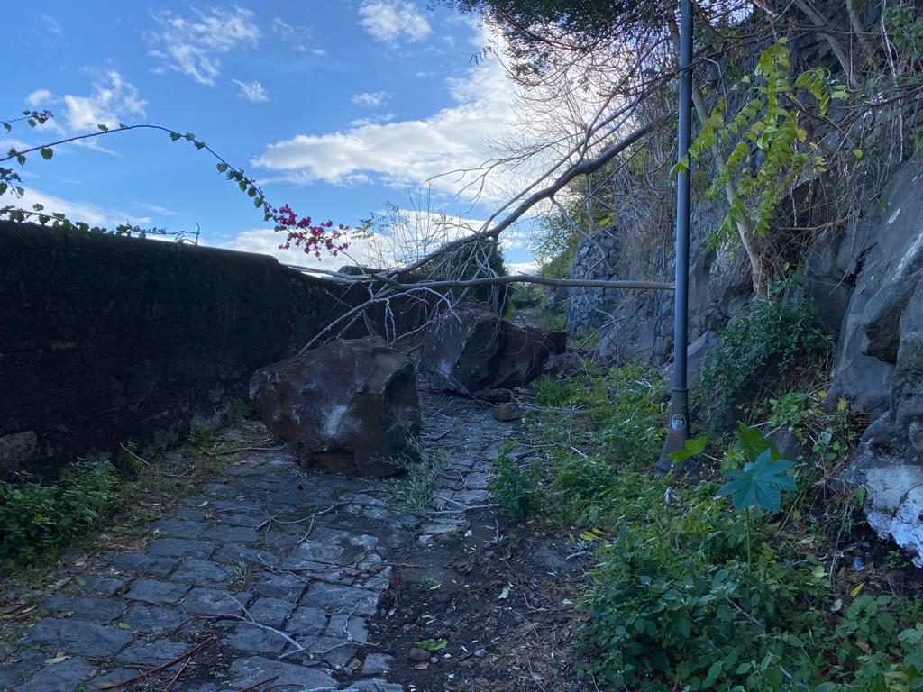 Ancora crolli nella Timpa di Acireale. Poco dopo mezzogiorno, due enormi massi e altri più piccoli si sono staccati dalla parete rocciosa e adesso intralciano via Tocco, zona a valle poco sopra il borgo marinaro di Santa Maria La Scala. Una situazione che si ripresenta, dopo il maltempo degli scorsi giorni, e che fa riemergere la questione del rischio idrogeologico a cui è esposto il territorio. A circa cinquanta metri dal punto che è stato interessato dal crollo, nei mesi scorsi, sono stati effettuati dei lavori di messa in sicurezza