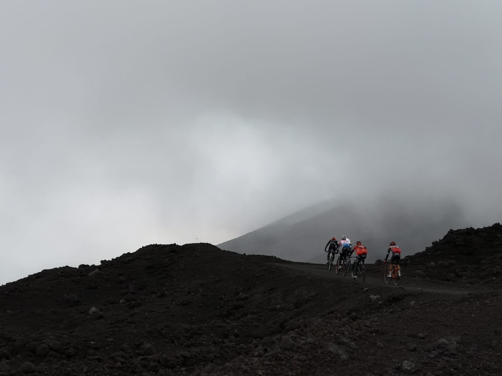 Temperatura sui zero gradi, nebbia fitta, grandine e violentissime raffiche di vento. In cima ai 27 chilometri, nei pressi dell’osservatorio dell’Ingv a quota 2.850, i ciclisti facevano fatica a reggersi in piedi. Ma non si sono voluti fermare, e alla fine in cinque ce l’hanno fatta a raggiungere la meta. «È stata dura ma tutti sono rimasti entusiasti dai paesaggi che questo percorso ci ha regalato», sintetizza Paolo Alberati, uno degli ex professionisti che hanno deciso di abbracciare la sfida e il sogno: portare una grande corsa ciclistica in cima all’Etna, percorrendo anche un tratto di sterrato.