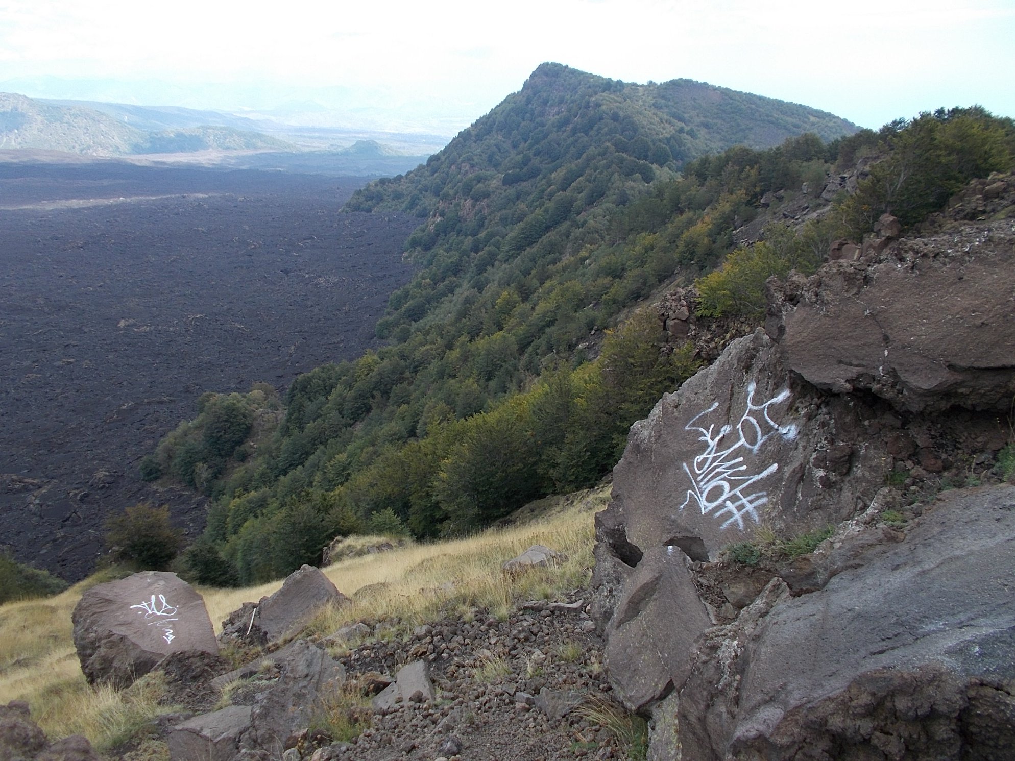 Fabrizio Meli, biologo catanese e guida ambientale escursionistica, ha fotografato alcuni giorni fa i graffiti che sono stati realizzati al valico di Acqua rocca degli Zappini, sulla Valle del bove. Guarda le foto