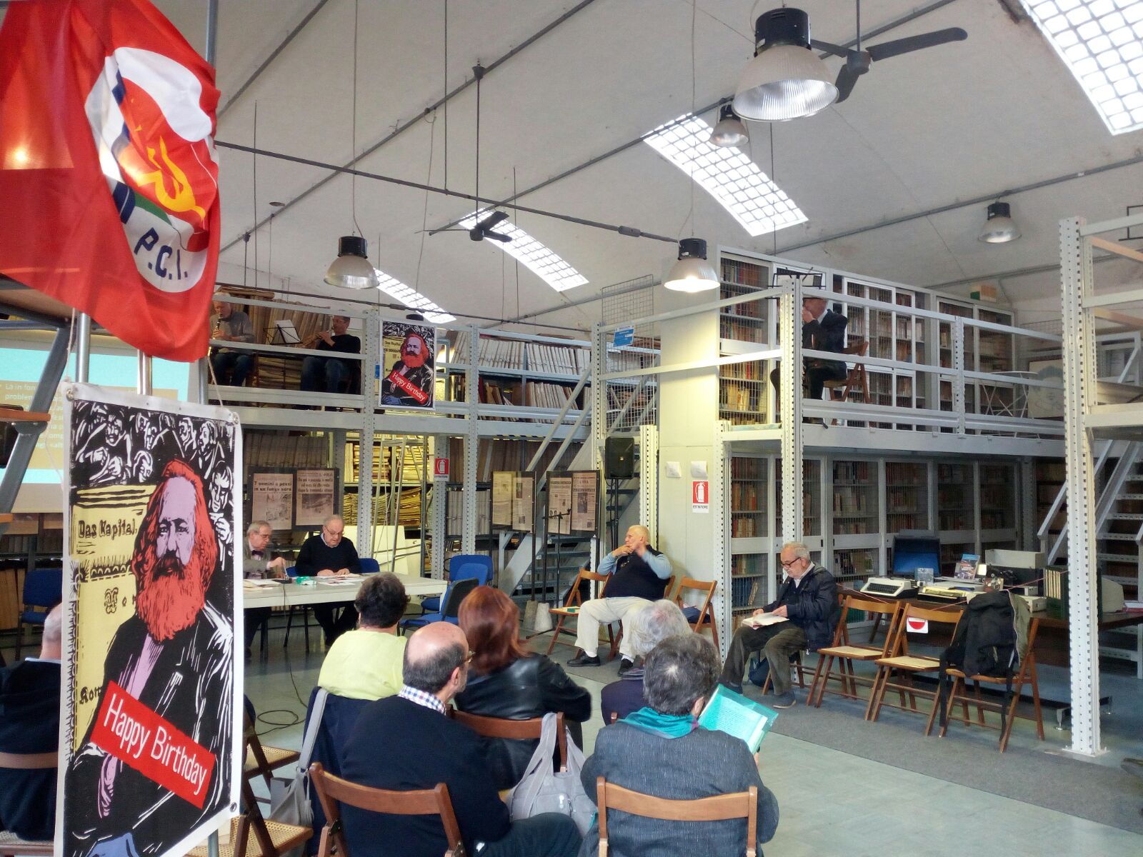 Per celebrarlo l‘Istituto Gramsci ha organizzato ieri “Happy Birthday Marx – 200 candeline per Karl Marx”: un incontro che è stata una festa, prima ancora che una commemorazione. Si sono susseguite letture dei suoi scritti (da parte di Gabriele Montemagno, Consuelo Lupo, Piero Violante e il presidente del Gramsci Salvatore Nicosia, ma anche di molti appassionati partecipanti tra il pubblico), musica da parte della Sicilian Improvisers Orchestra e persino un corteo all’interno dei Cantieri Culturali della Zisa, sulle note de L’internazionale e sventolando dei fazzoletti rossi.