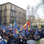 Secondo una prima stima degli organizzatori sono circa 10 mila. Secondo la polizia circa quattro mila. Sono in tanti. E continuano ad arrivarei gli autobus dalle altre province siciliane. Una distesa di bandiere giallo rosse (con il simbolo della Trinacria) e di bandiere blu (del Movimento dei Forconi) sta colorando la centralissima via Libertà a Palermo. Il corteo, partito da Piazza Croci, è diretto verso Palazzo dei Normanni, sede dell’Assemblea regionale siciliana. Tantissimi gli studenti che hanno raccolto l’invito dei Forconi. Gli slogan dei ragazzi e di tuuto il corteo, non risparmiano nessuno: no a Monti, no a Lombardo, no alla politica che ci ha rubato il futuro. No a chi ha insinuato il sospetto che la mafia piloti il movimento, come il presidente degli industriali siciliani Ivan Lo Bello: “Abbiano il coraggio di dircelo in faccia che siamo mafiosi” urlano gli studenti “i veri mafiosi sono loro”.