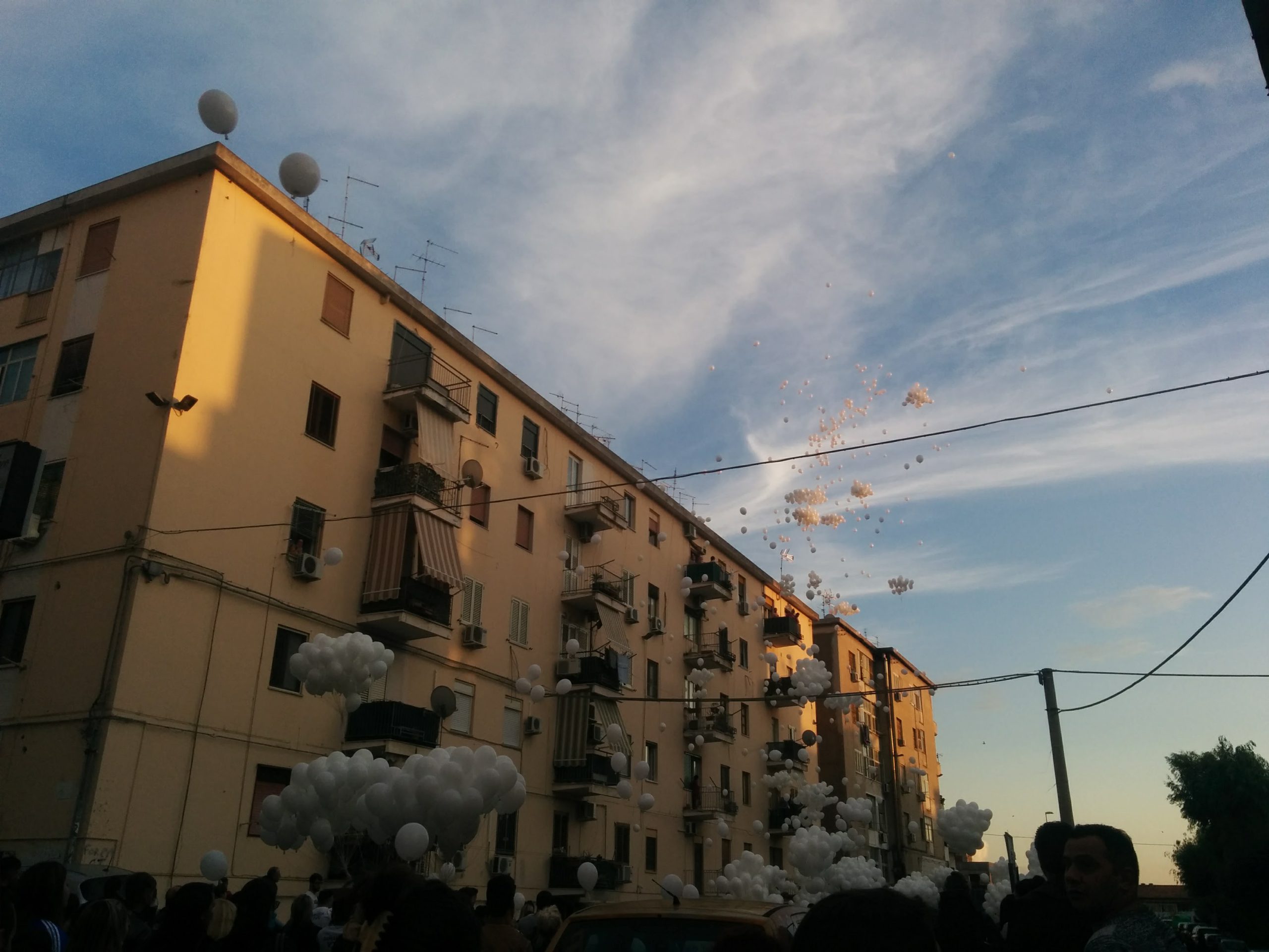 gli animi si surriscaldano. Il gruppo degli ultras scandisce il coro «Eugenio uno di noi», una donna propone: «Facciamolo comunque il corteo, andiamoci in chiesa, accussì ‘n’ana attaccari a tutti». Viene applaudita anche lei. Sono da poco passate le 15.30 quando centinaia di persone si spostano verso la parrocchia, a piedi, tra i vicoli delle case popolari. Mentre passa la manifestazione, dai palazzi le persone si affacciano. «Scinniti tutti, ppì Eugenio». Molti scendono, solo alcuni si limitano a battere le mani. Nel frattempo arrivano centinaia di palloncini bianchi, distribuiti tra le persone. Tanti coetanei della vittima indossano una maglietta bianca con le sue foto e la scritta «Resti sempre nel nostro cuore». Diverse ragazze piangono, tanti amici hanno gli occhi lucidi. Nel frattempo il serpentone di persone raggiunge corso Indipendenza. Il traffico viene bloccato dai partecipanti al corteo, non ci sono vigili urbani né automobili della polizia. Le volanti che questa mattina presidiavano la zona sono sparite.