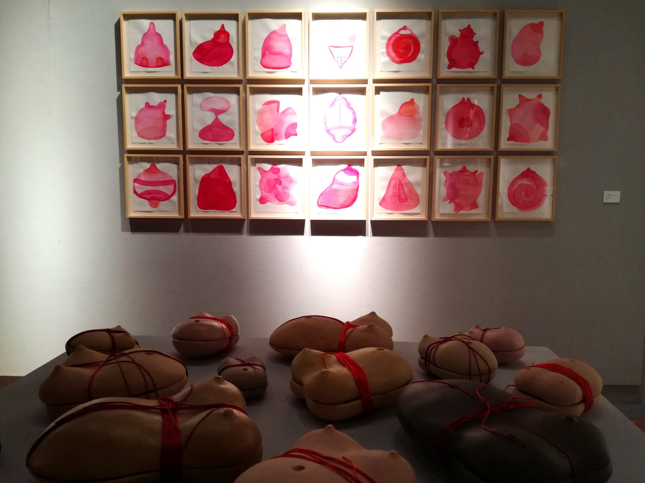 L’esposizione alla GAM si articola in tre sezioni: femminile, paesaggio ed esodo. Le opere che analizzano la dimensione della femminilità sono evocative ed esplicite allo stesso tempo, alludono alle forme del corpo della donna – seni, labbra, organi sessuali –, come i disegni di Strange fruits, i busti di donna in terracotta della serie Le Segrete, le vesti di Ante/nate, dove il corpo della donna viene visto dall’artista come abito e abitazione: «nel verbo abitare –racconta de Grolée – mi piace sentire anche il riferimento all’abito. Per me l’abito, nel suo significato più profondo, è casa, città, organismo, corpo. C’è un legame molto forte tra la mia ricerca sul vestito come seconda pelle, l’abito appunto, e sulla casa come involucro». Il tema scottante dell’edilizia siciliana viene affrontato dall’artista in Villinomania, una serie di cartoni stampati a forma di case che fanno riferimento alla cementificazione coatta degli anni del Sacco di Palermo, e Mobile City II, un’installazione di elementi in legno e alluminio che, come i mattoncini dei giochi per bambini, danno vita a ironici scheletri architettonici che ricordano l’incompiutezza di tanta edilizia siciliana rimasta incompiuta.