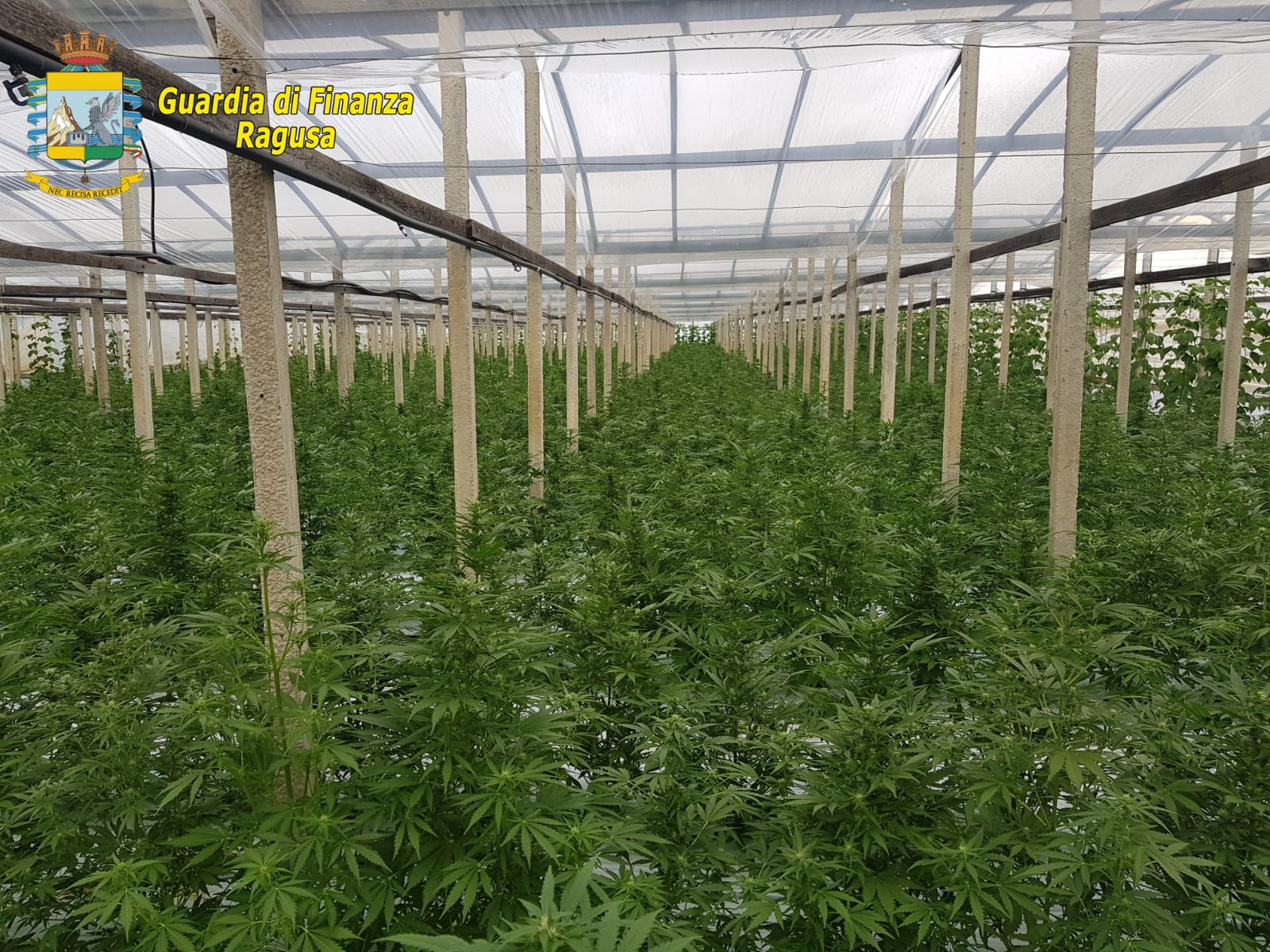Gela, diecimila piante di marijuana nascoste in tre serre Impianto d’irrigazione alimentato dal vicino corso d’acqua