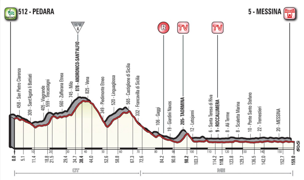 Giro d’Italia, il percorso della tappa Pedara-Messina Comuni toccati, gli orari e le caratteristiche tecniche