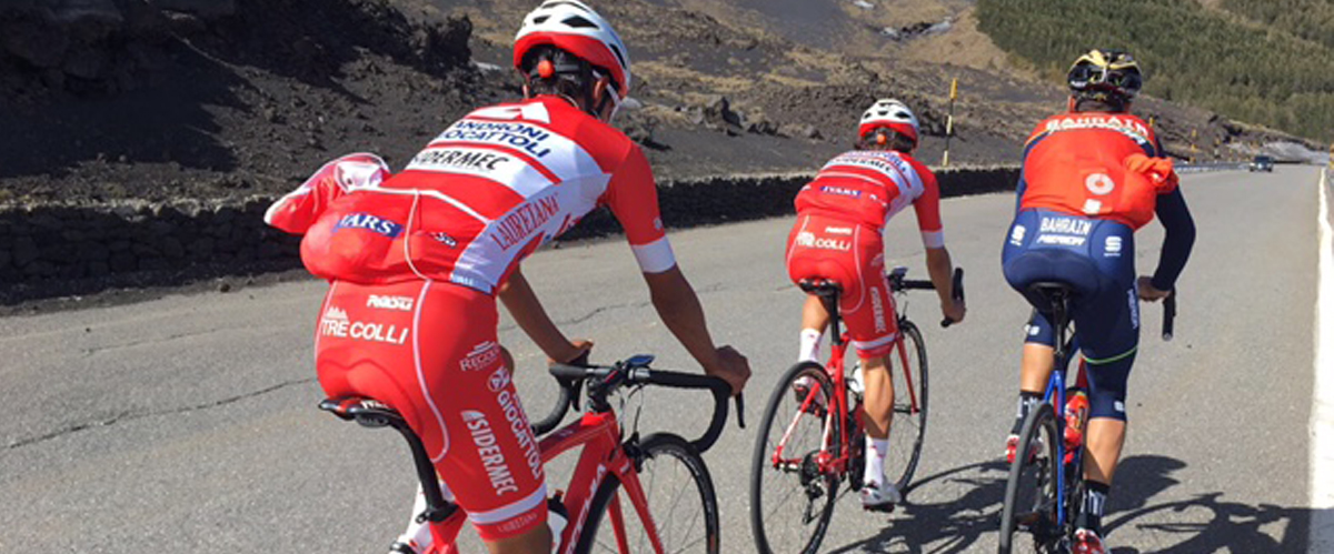 Io stesso ho corso il Giro d’Italia negli anni ’90. Nato a Perugia però vivo alle pendici del Vulcano oramai da dieci anni proprio per colpa dell’Etna dove nei primi anni Duemila, ancora atleta professionista, venivo ad allenarmi per sessioni di training in altura e lassù conobbi mia moglie, catanese doc. Adesso i miei ex colleghi sanno che questa è la mia casa, perciò ogni volta che scelgono di soggiornare da queste parti mi tengono come punto di riferimento. E a me fa piacere accompagnarli su quelle che oramai considero anche le mie strade. Così come è successo a novembre con il vincitore dell’ultimo Tour de France il keniano bianco Chris Froome, quando è venuto in perlustrazione segreta per conoscere questa salita e valutare se correre o meno il Giro d’Italia. Era nei suoi desideri esserci al Giro, rimase affascinato, ma poi la sua squadra ha deciso di dirottarlo ancora una volta sulle strade di Francia. Ma la salita è piaciuta così tanto sia a lui che ai pubblicitari di Sky Tv – il suo main-sponsor – da usarla per uno spot tv.