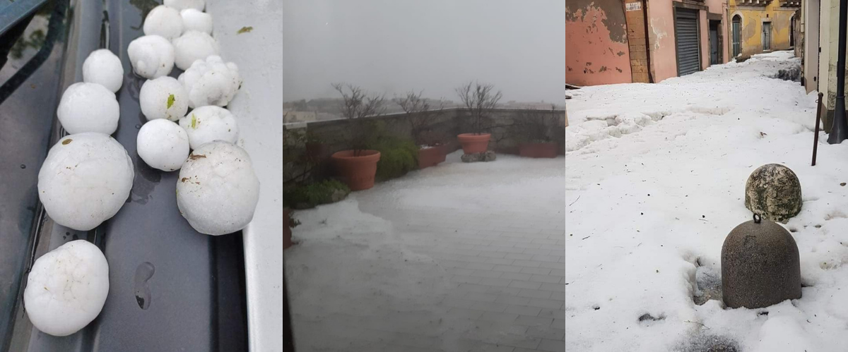 Grandine, pioggia e vento in provincia di Siracusa Palazzolo imbiancata. Chiuso tratto dell’autostrada