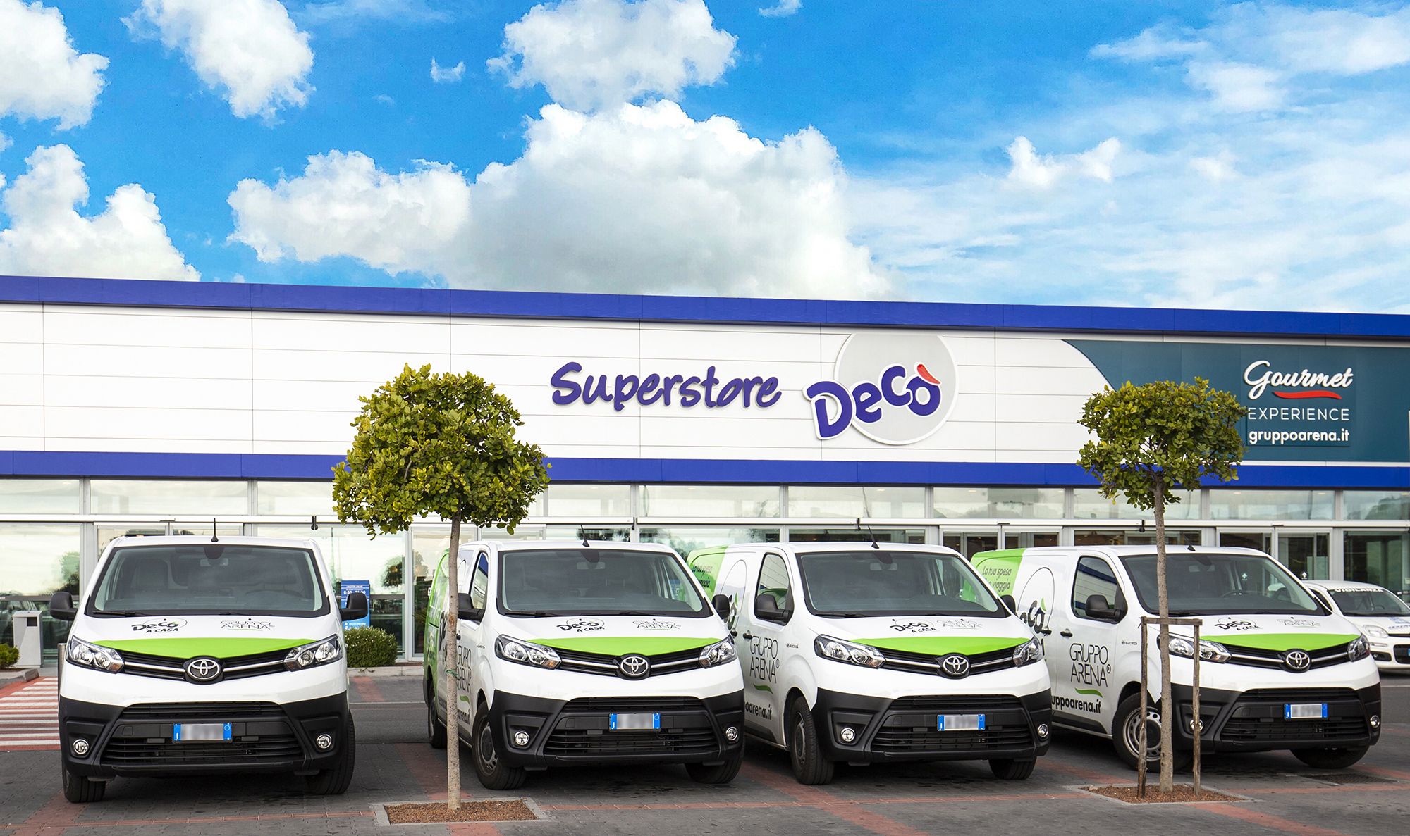 Il Gruppo Arena, oltre ad aver attivato e allargato il servizio su moltissimi centri siciliani, raggiungendo tutte le maggiori città della regione e toccando la copertura di più di 40 comuni, è in fase di lancio del servizio Decò Drive che consente ai clienti di ordinare la spesa online e ritirarla comodamente dall’auto, con l’integrazione di colonnine per la ricarica delle auto elettriche, in maniera totalmente gratuita per i clienti.