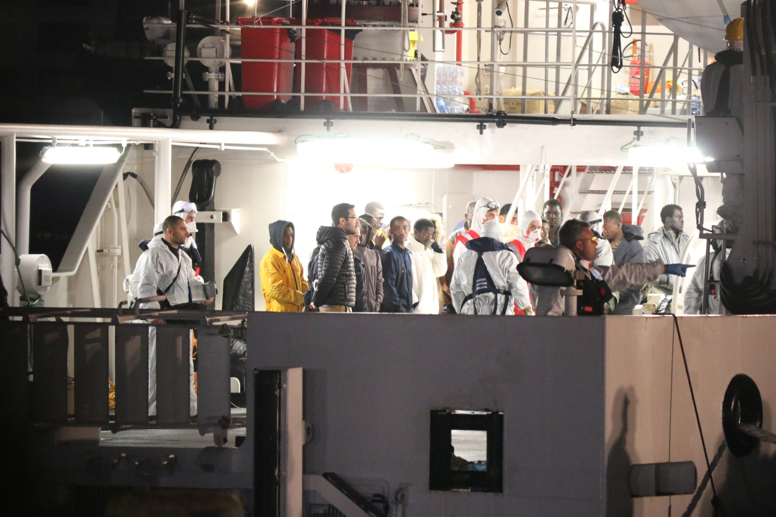 Sono arrivati intorno a mezzanotte i migranti che si sono salvati dal naufragio di due giorni fa nel Canale di Sicilia. Ad accoglierli il ministro Graziano Delrio. Verranno portati al Cara di Mineo e ascoltati dagli inquirenti. Mentre sono stati arrestati il comandante dell'imbarcazione e un membro dell'equipaggio. Guarda il video e le foto