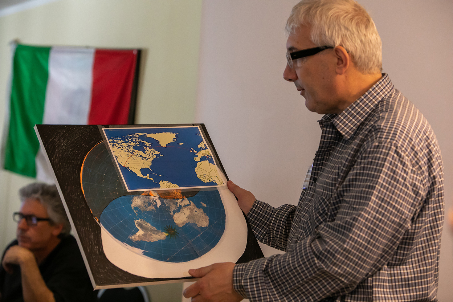 I terrapiattisti a Palermo tra finti buchi neri e i Giganti «Etna si vede da Mondello, prova che terra non è tonda»