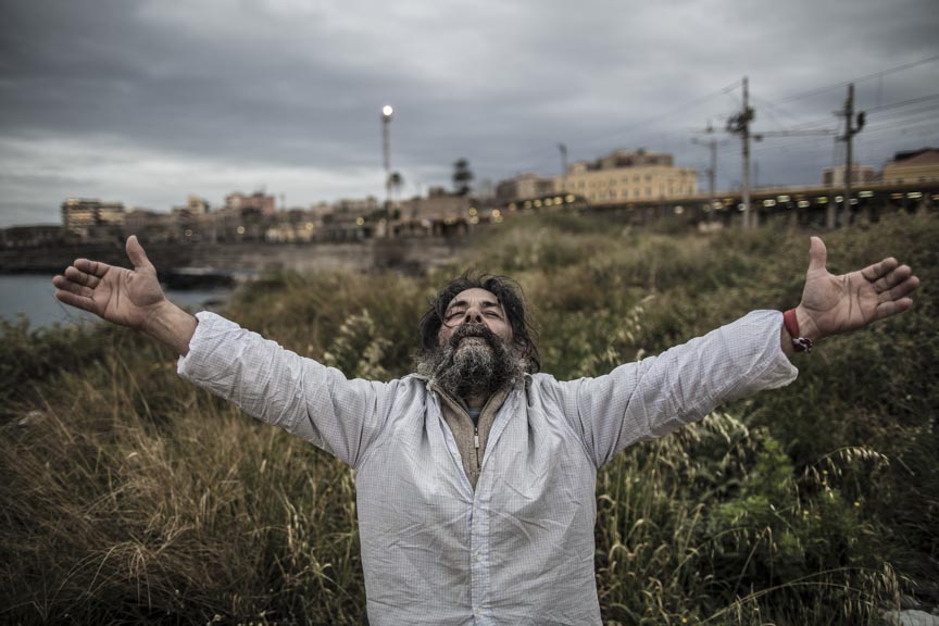 «La prima idea – racconta Coco, anche lui siciliano – era di seguire il movimento No Muos. Lì ho incontrato Turi e ho cambiato obiettivo, sono stato inondato dalla sua energia pacifica. L’ho seguito per due anni, e sono stati due anni intensi e difficili, dovevo sempre contattare mezza Italia per scovarlo e raggiungerlo». Turi infatti, coerentemente col suo percorso di vita, ha abbandonato da anni ogni legame con gli oggetti del quotidiano: non ha il cellulare, non usa l’auto per spostarsi, non indossa scarpe, non ha una casa, si sposta di lotta in lotta a seconda della propria sensibilità.