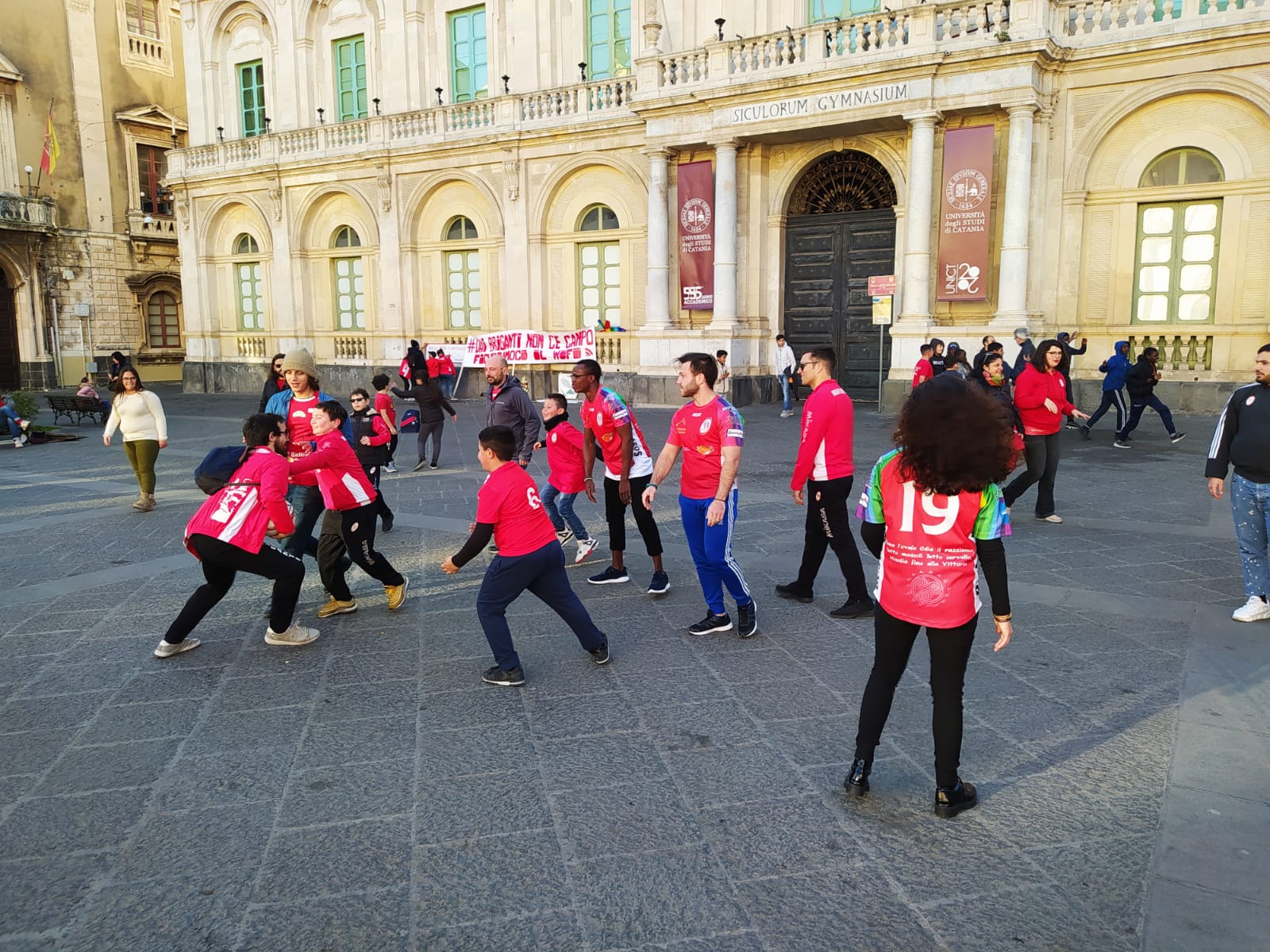 C’era una volta il campo San Teodoro liberato a Librino. Avamposto di legalità targato Briganti. Loro, la squadra di rugby simbolo in un quartiere dalle mille difficoltà, ci sono ancora. A mancare, da circa un anno, è il rettangolo di gioco per portare avanti quello che sanno fare meglio: aggregare ragazze e ragazzi in nome della palla ovale e non solo. La colpa di tutto questo? Un mix tra rinvii e promesse della politica, puntualmente disattese, e presunti errori tecnici nel progetto di riqualificazione del campo. Così ieri pomeriggio il rugby è sbarcato in piazza Università. Nessuna manifestazione promozionale ma una protesta vera e propria. Insieme, con le loro casacche rosse, giocatori, volontari e sostenitori.