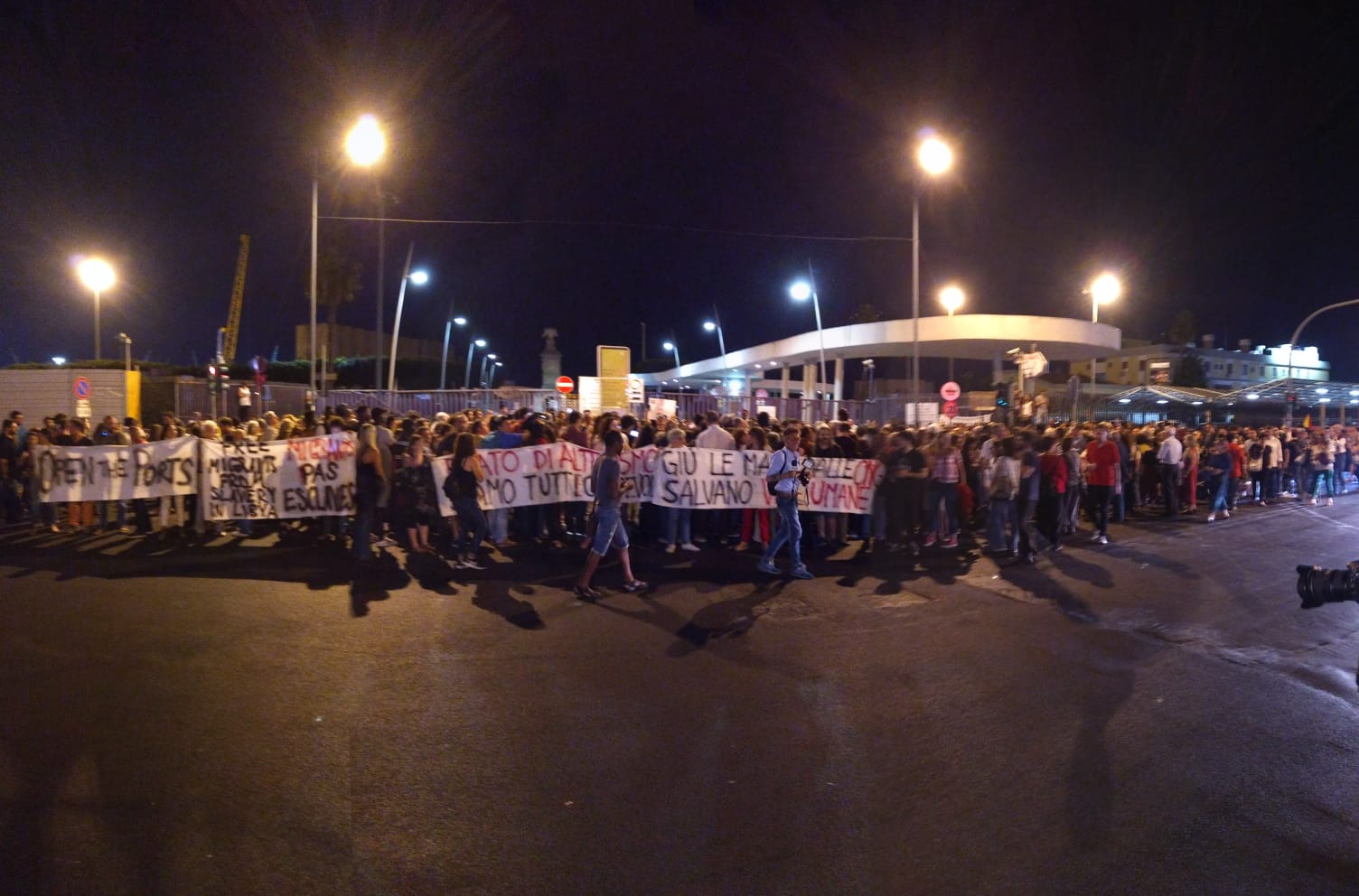 È risposta alla decisione del Ministro dell'Interno Matteo Salvini che non ha permesso l'attracco alla nave Aquarius con 629 migranti a bordo in Italia. Circa duemila persone che con striscioni e megafono hanno urlato il loro dissenso