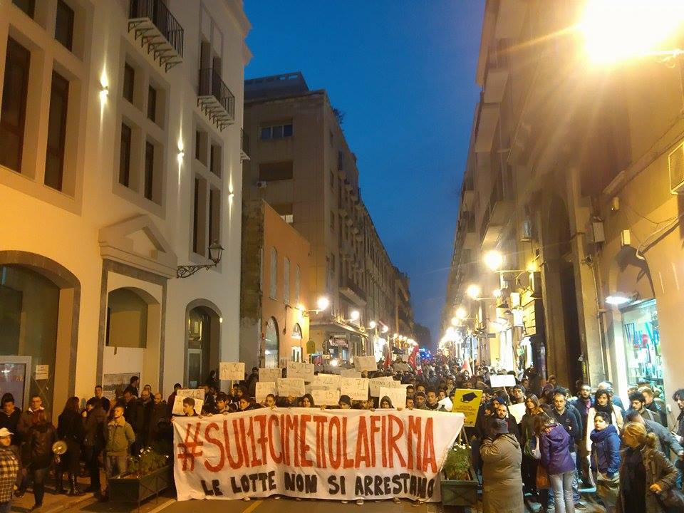 In tremila a Palermo per #sui17cimettolafirma Per la libertà degli attivisti dei centri sociali